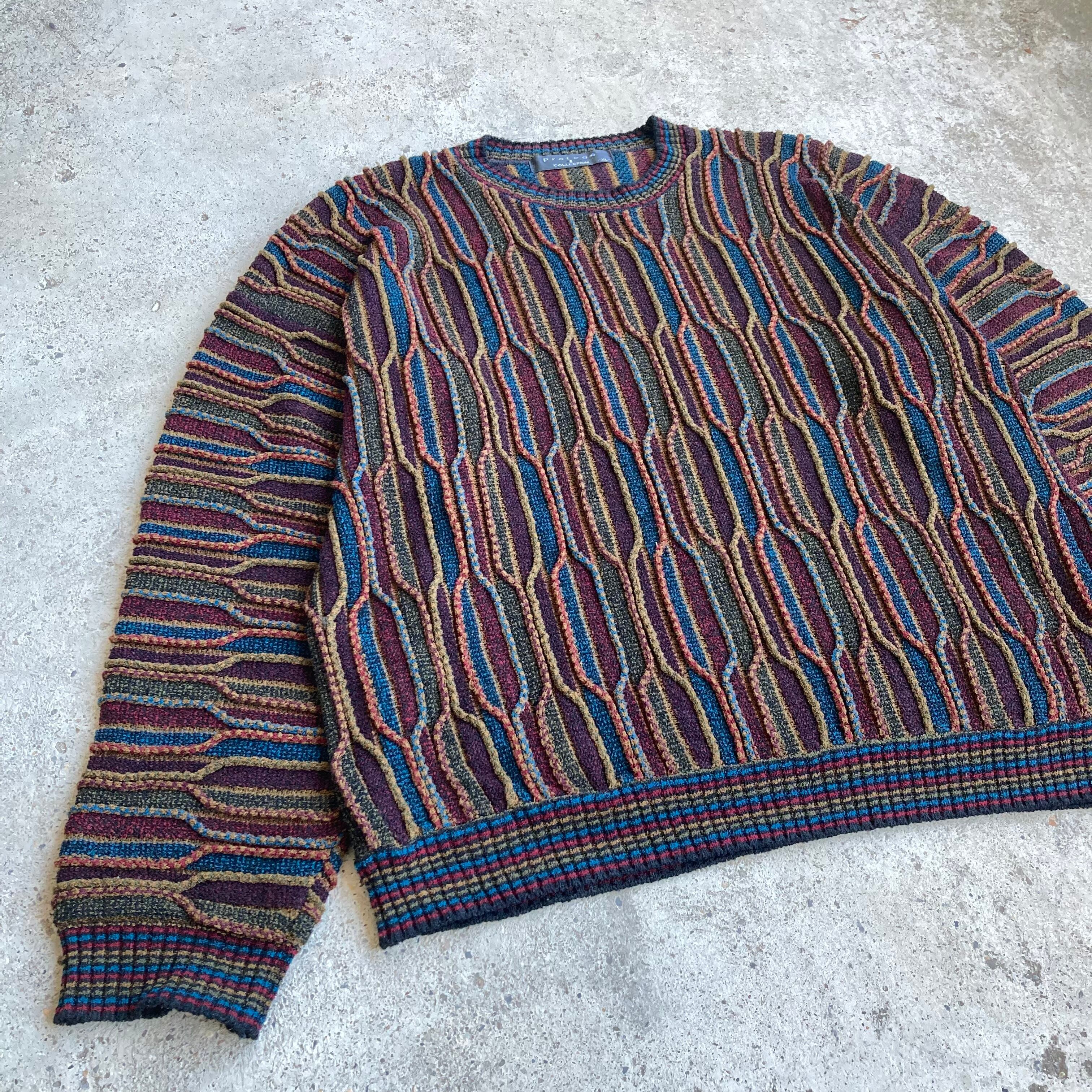 90sに流行していたCOOGI(クージー)のような立体的な編み込みが特徴的です。