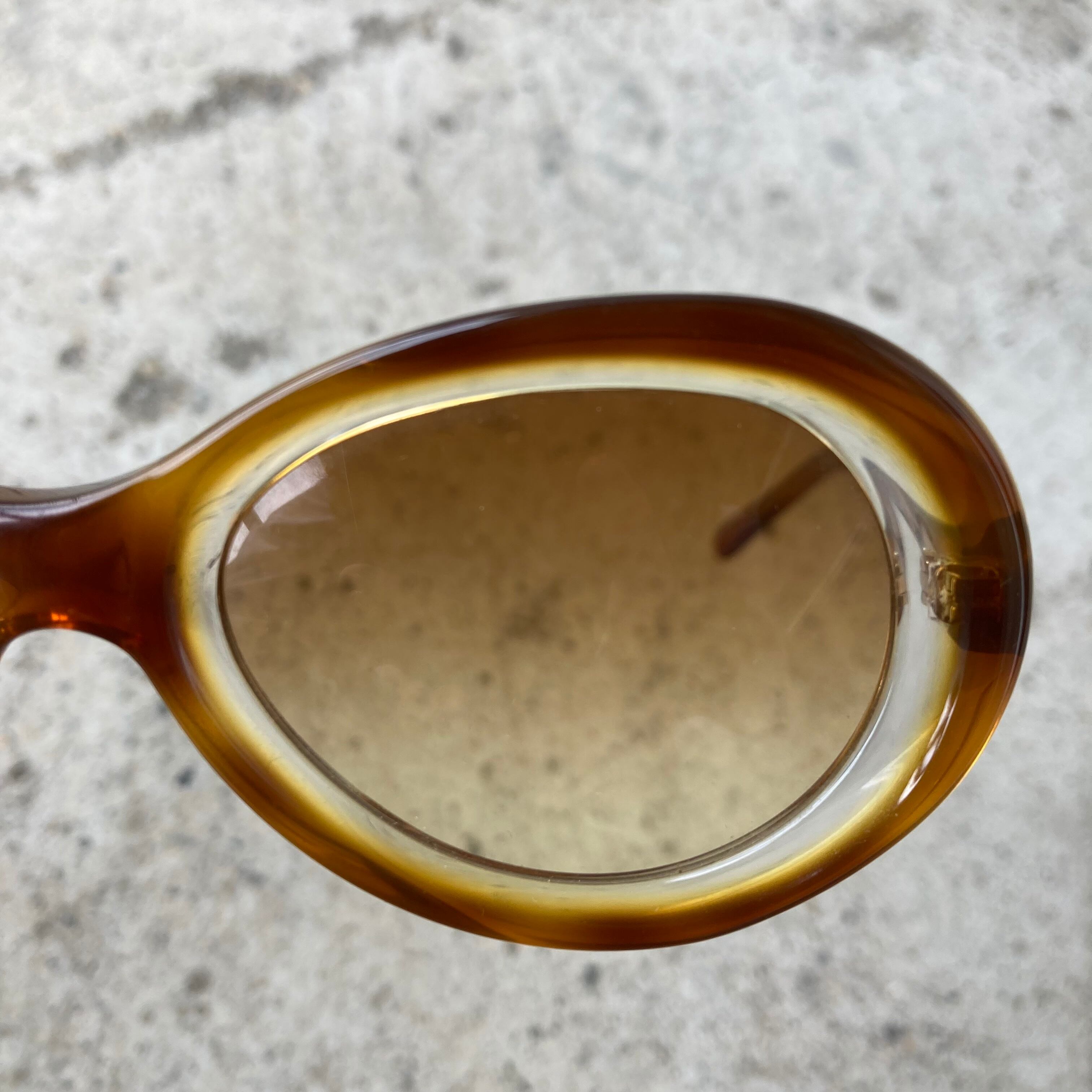 オーバル型のブラウンカラーサングラスになります。太めのリムとテンプルが存在感を放っております。