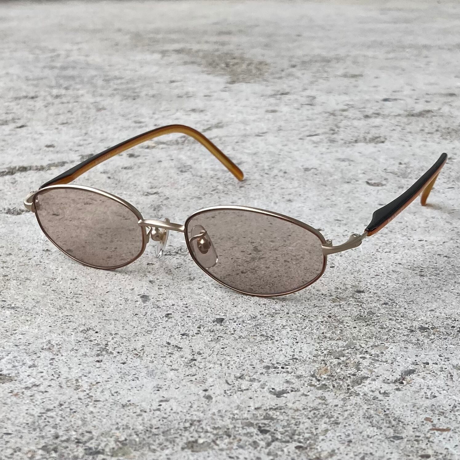 落ち着いた雰囲気のあるブラウンカラーのオーバルサングラスになります。秋時期のスタイルにフィットするカラーリングかと思います。