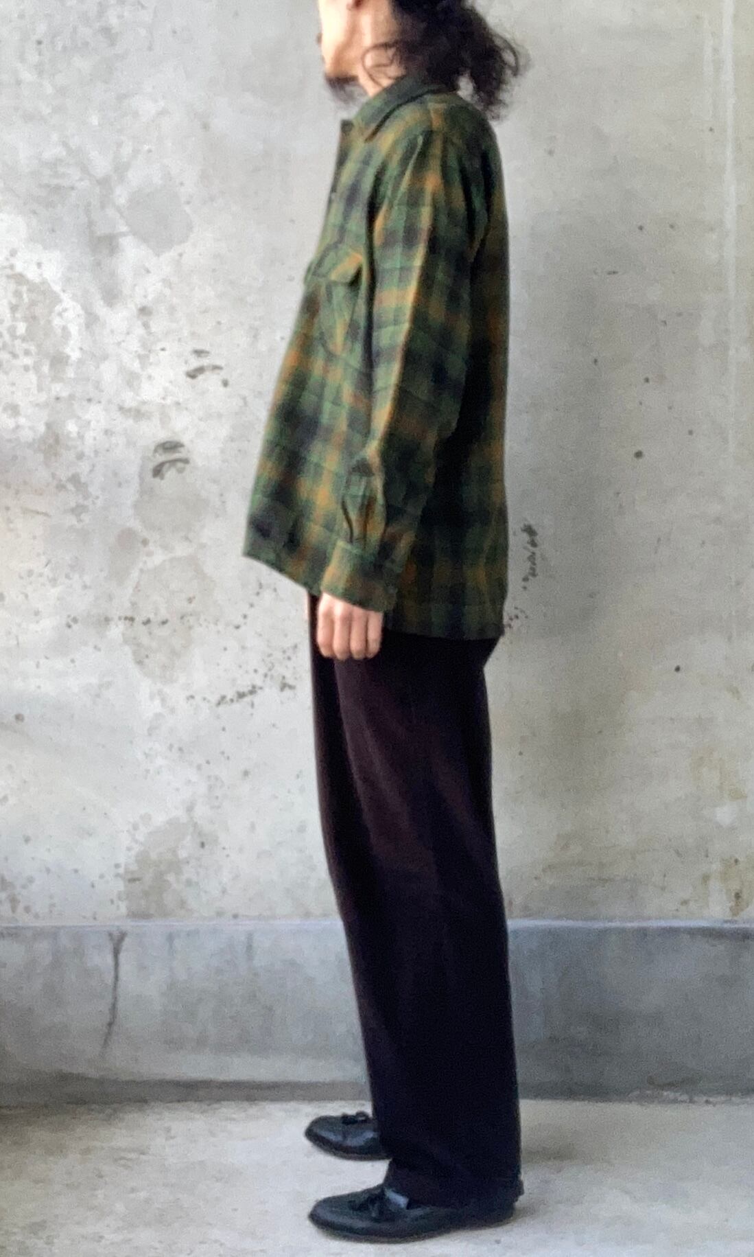 60s〜70s にかけての オンブレチェックシャツ になります。襟の形がロングポイントです。