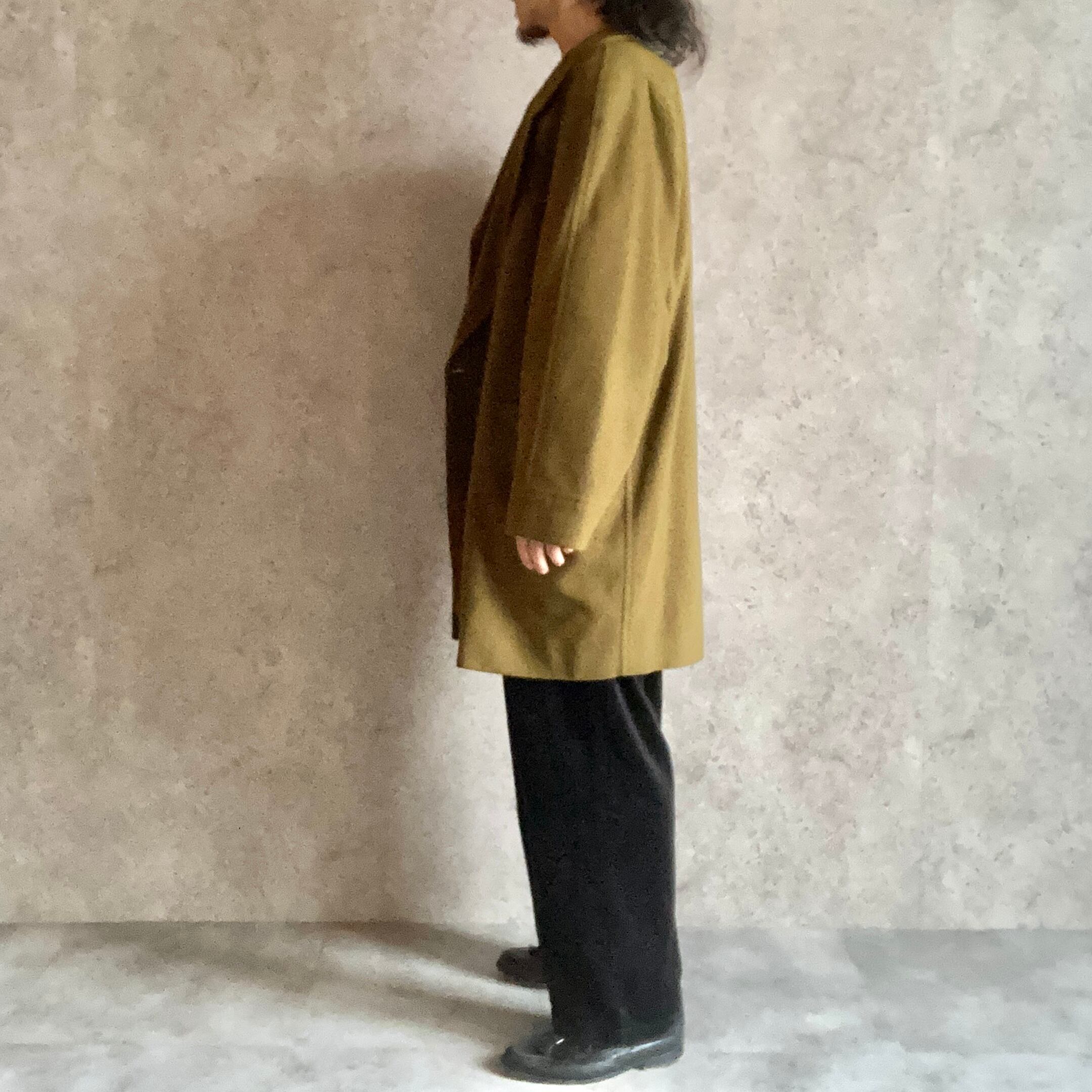 イエローブラウンの色味が秋冬の雰囲気によく似合いそうです。生地にはカシミヤ混合されておりますので、着心地も気持ち良い1着になります。