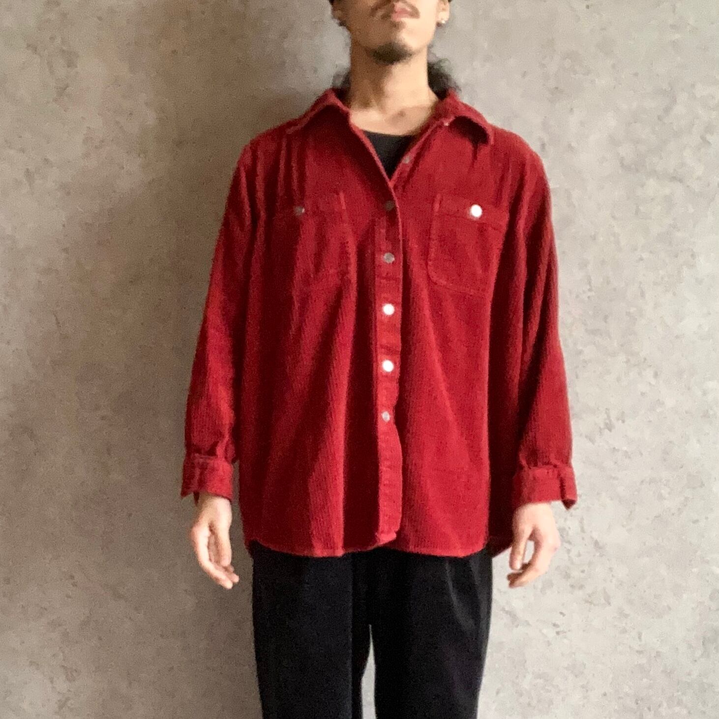 後裾部分にダメージがございますが、そこも含めて非常に雰囲気のあるコーデュロイシャツかと思います。