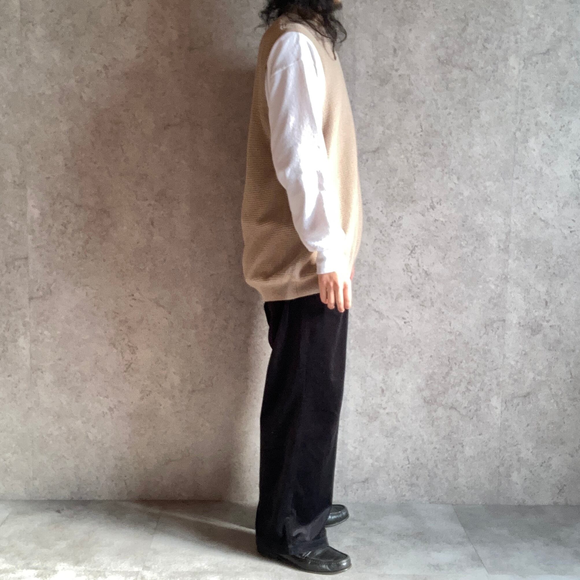 オーバーサイズ ビッグサイズ のニットベストになります。ベージュのカラーリングが落ち着いており雰囲気良い1着です。