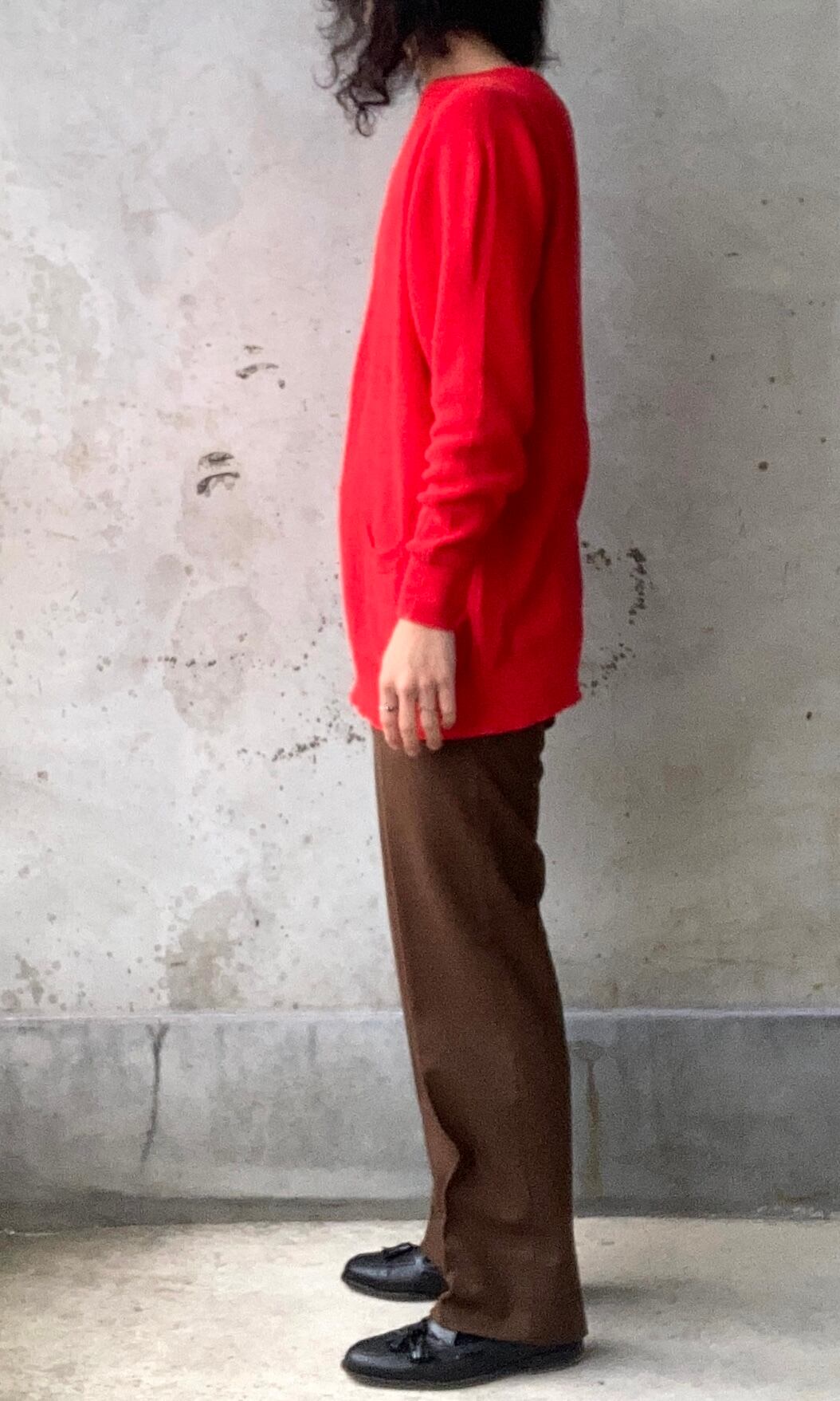 お尻が隠れる程のちょうど良い着丈ですので、緩くラフに着て頂けるかと思います。