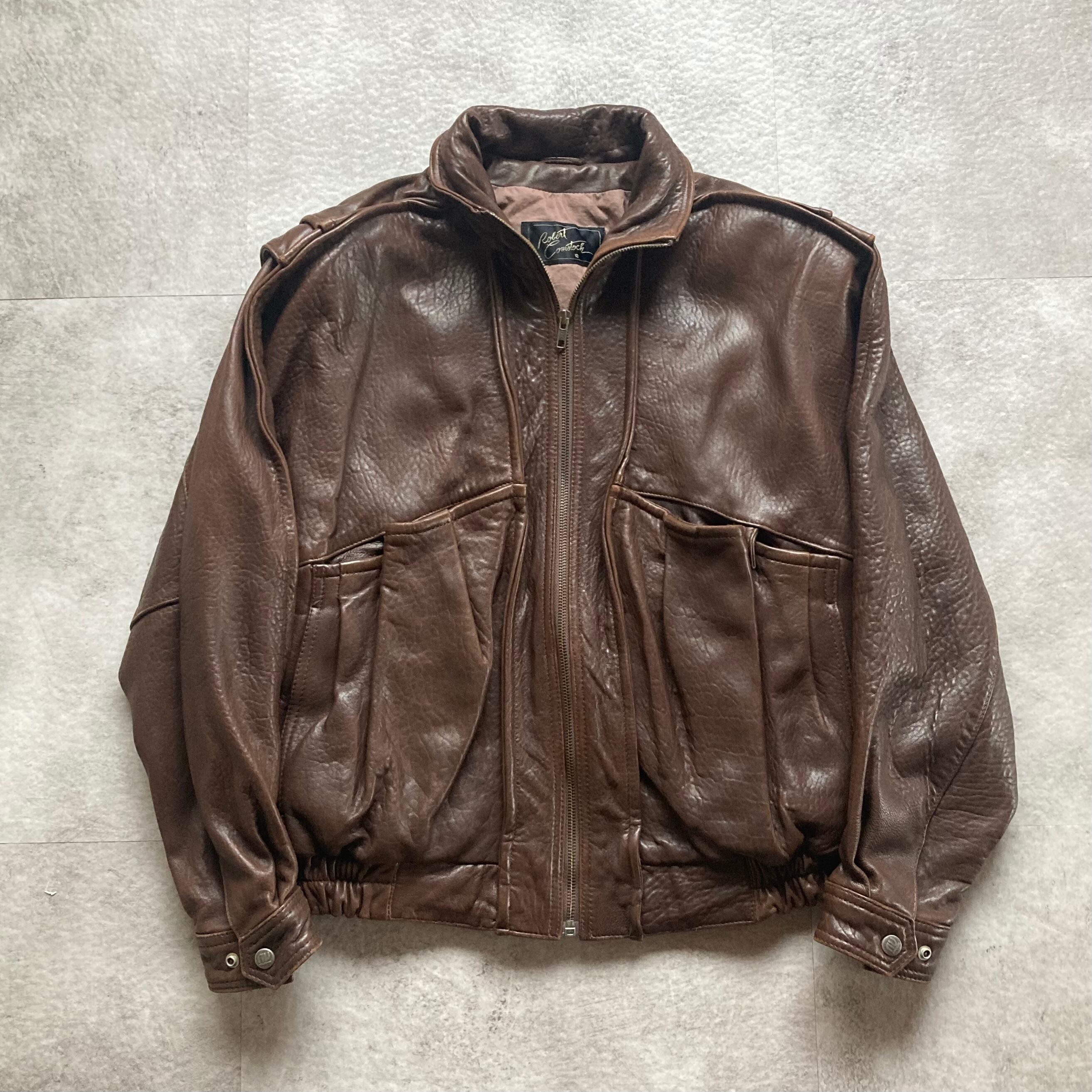 チョコレートブラウンカラーのラムレザージャケットになります。ヴィンテージレザーならではのシボ感と重厚さがたまらなく渋い1着です。