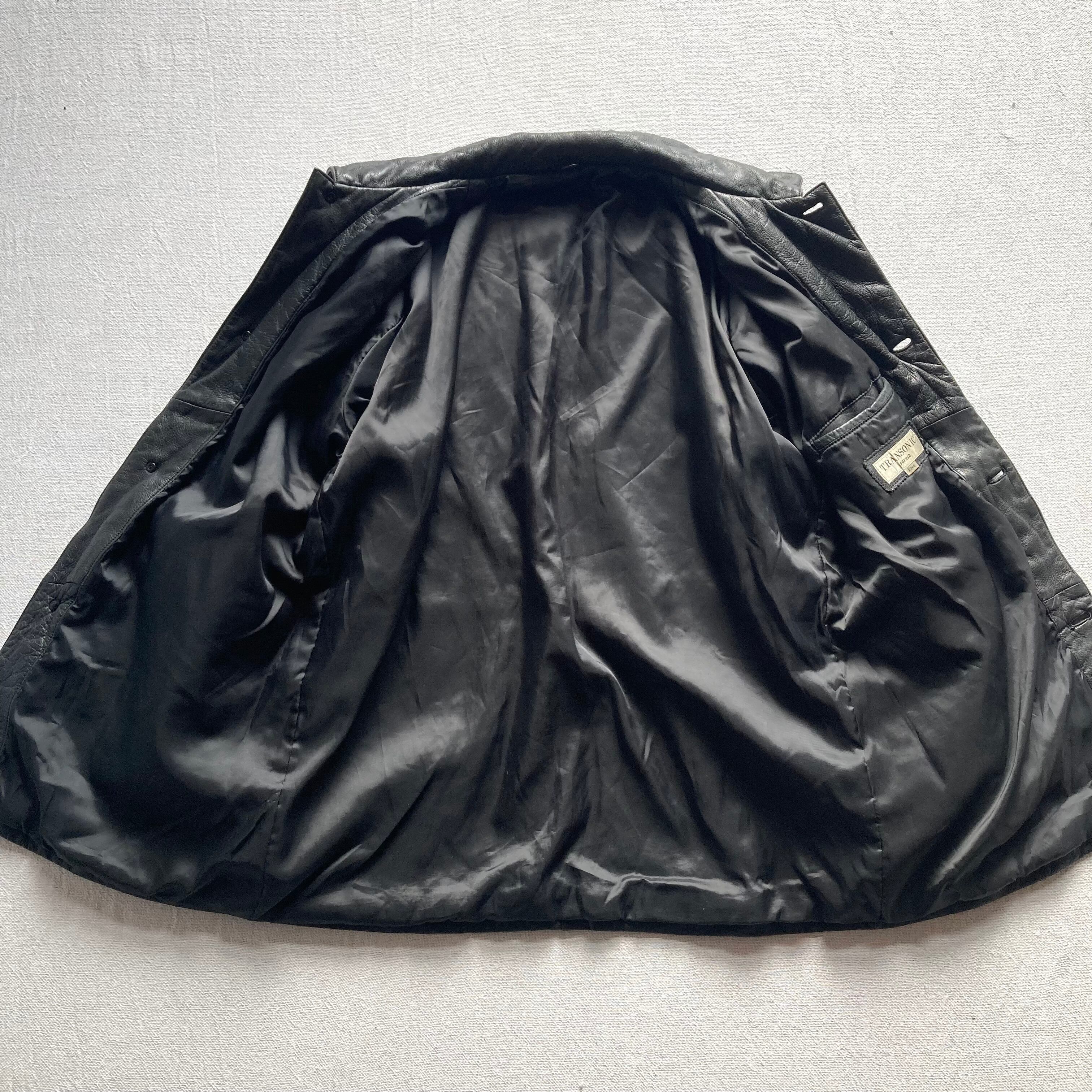 シボ感のあるガッシリと重厚な革質と、ブラックレザー特有の艶やかな光沢が非常に雰囲気のある1着となっております。長めの着丈とゆとりある身幅ですので、厚手のニットなどを着込んでも着膨れしづらいシルエットとなっております。