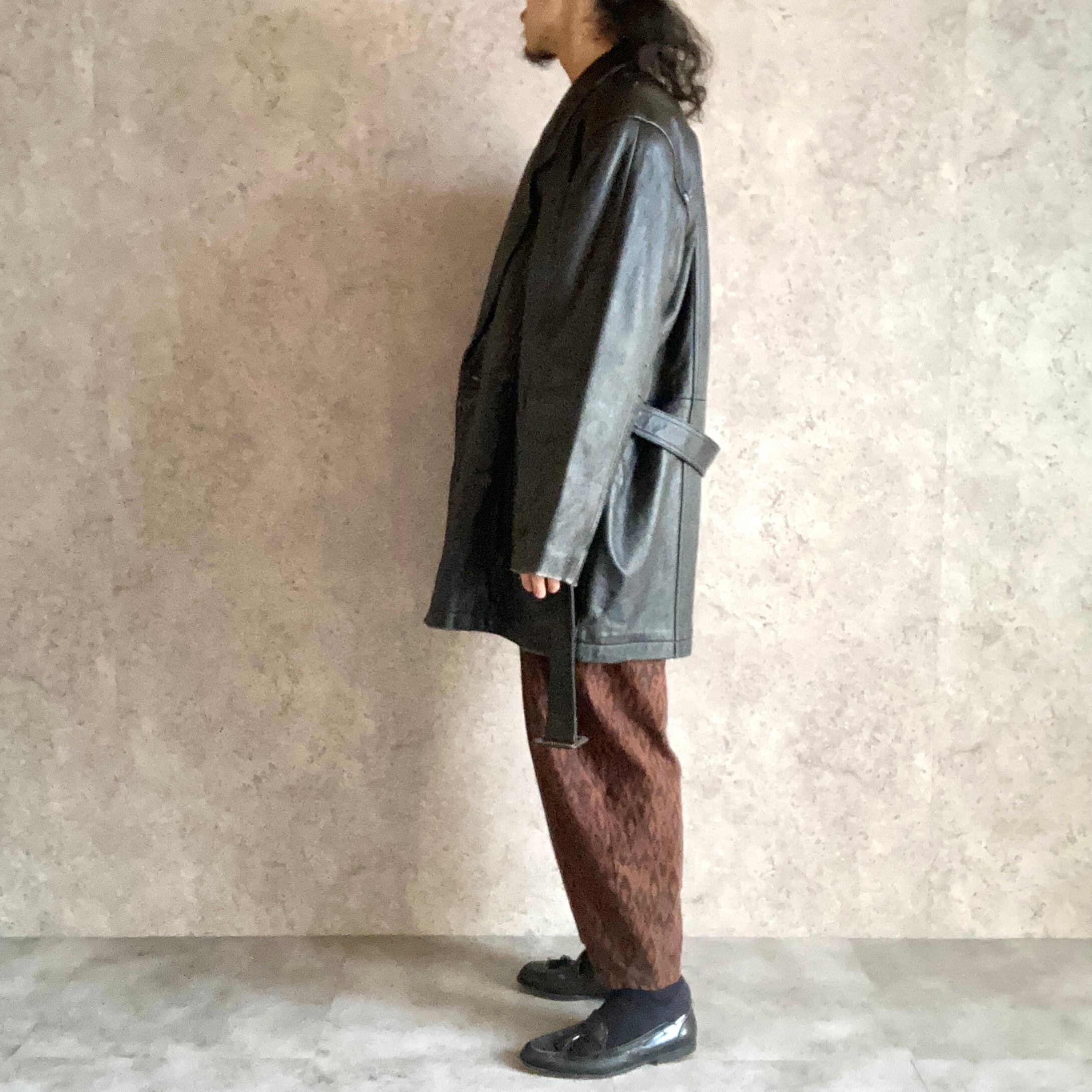 Vintage leather jacket ダブルブレスト ウエストベルト