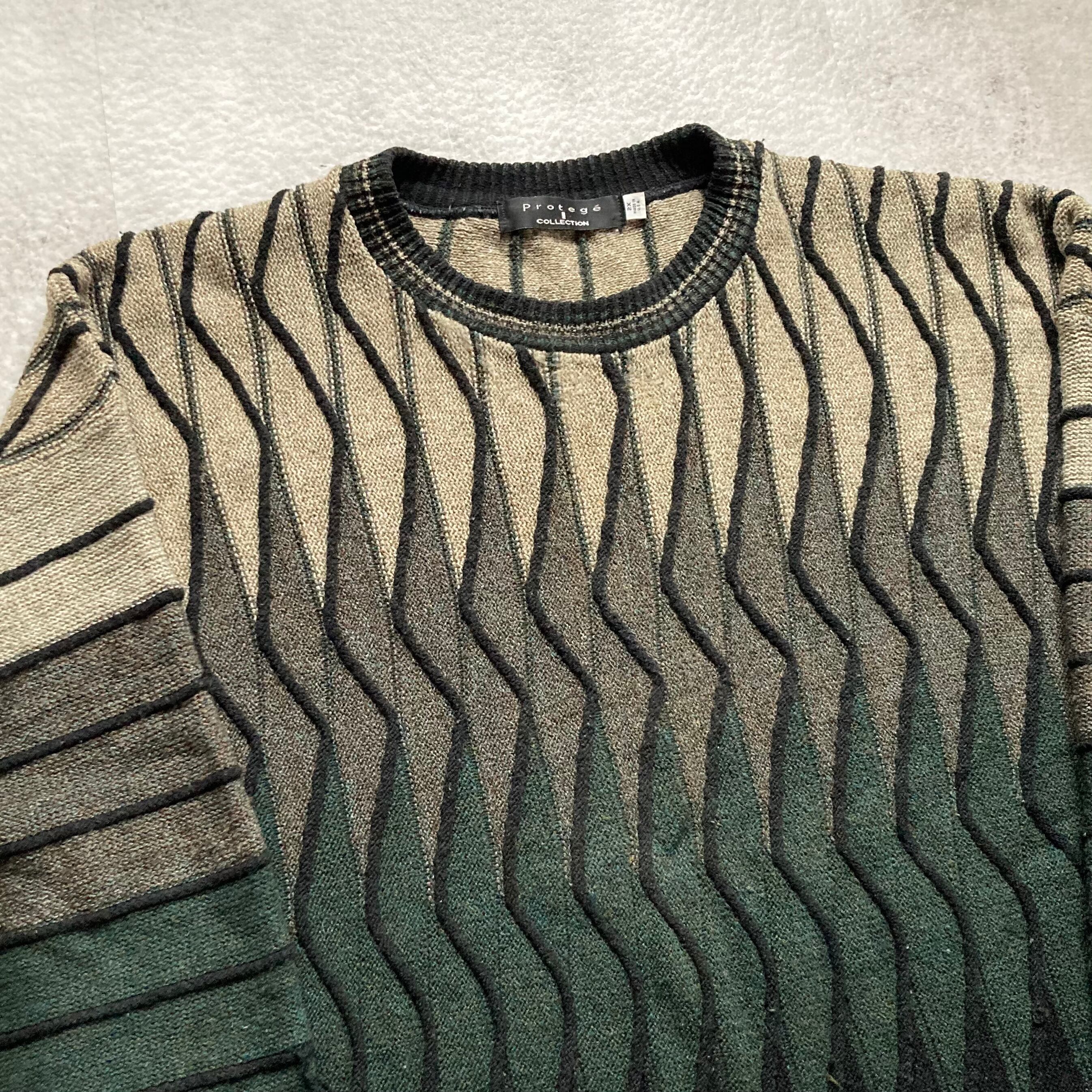 USA製の オーバーサイズ 3Dニットセーターになります。90s COOGIのような非常に雰囲気のある素敵な1着です。