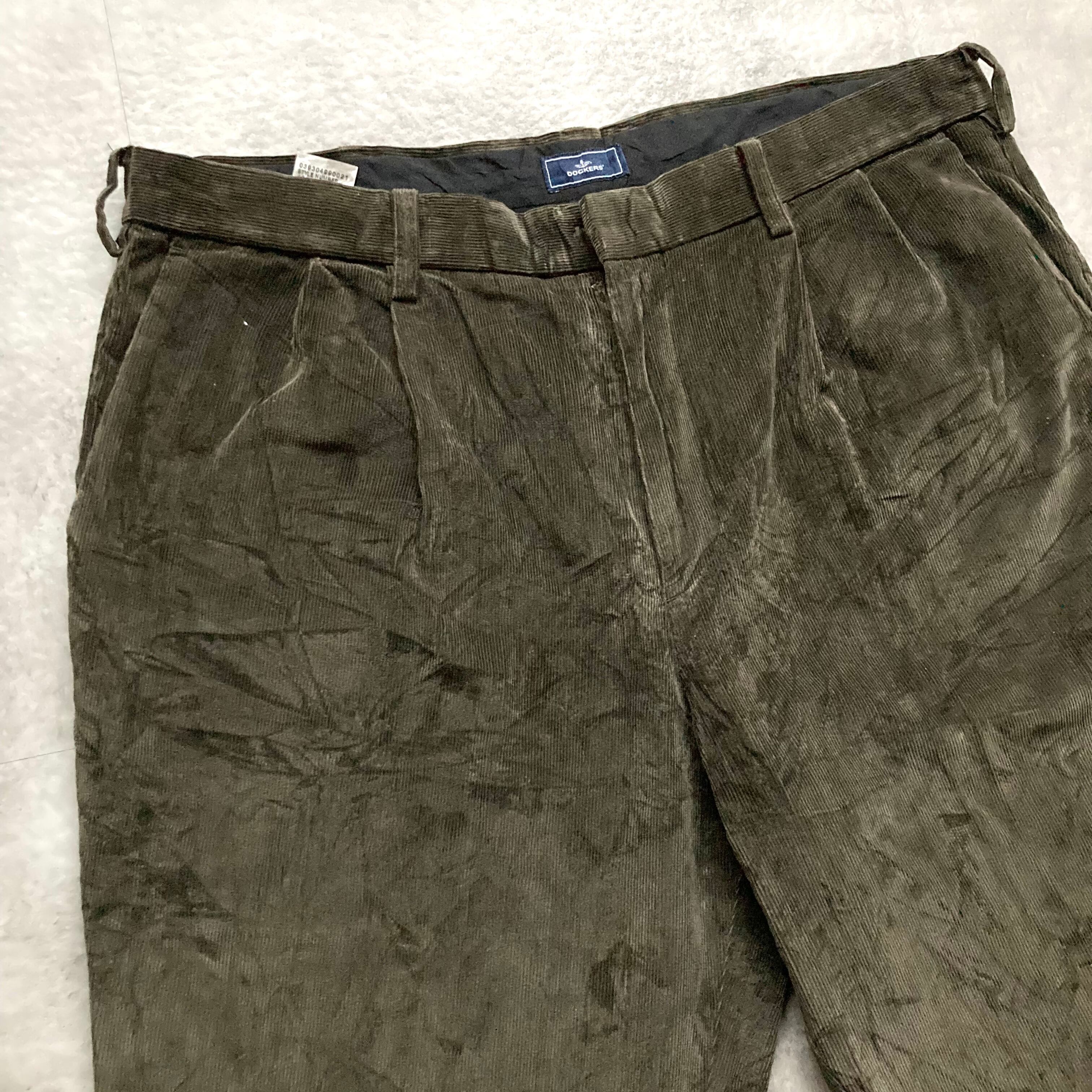 オリーブカラーの細畝コーデュロイパンツになります。W40の オーバーサイズ ビッグサイズ シルエットですので緩く着用して頂けます。