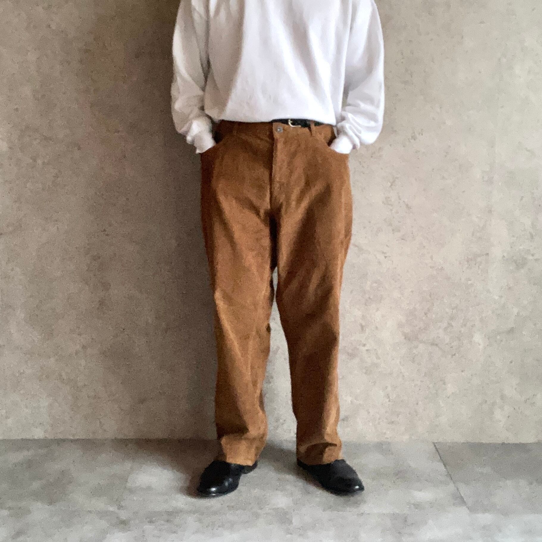 ライトブラウンカラーのコーデュロイパンツになります。W38の オーバーサイズ ビッグサイズ シルエットですので緩く着用して頂けます。