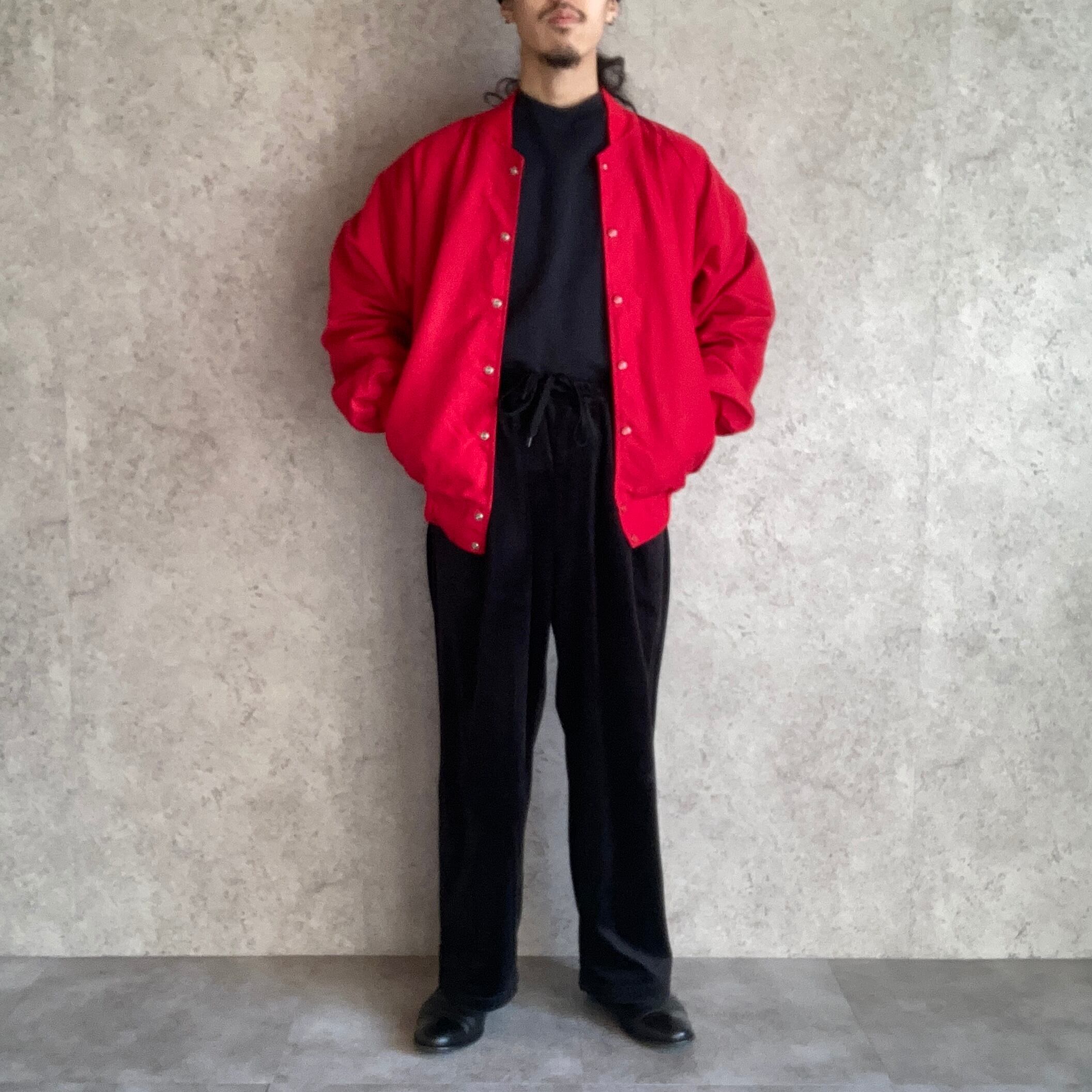 レッドのカラーリングが目を惹くアワードジャケットになります。サイズXLの オーバーサイズ ビッグサイズ ですので、緩く着用して頂けるかと思います。