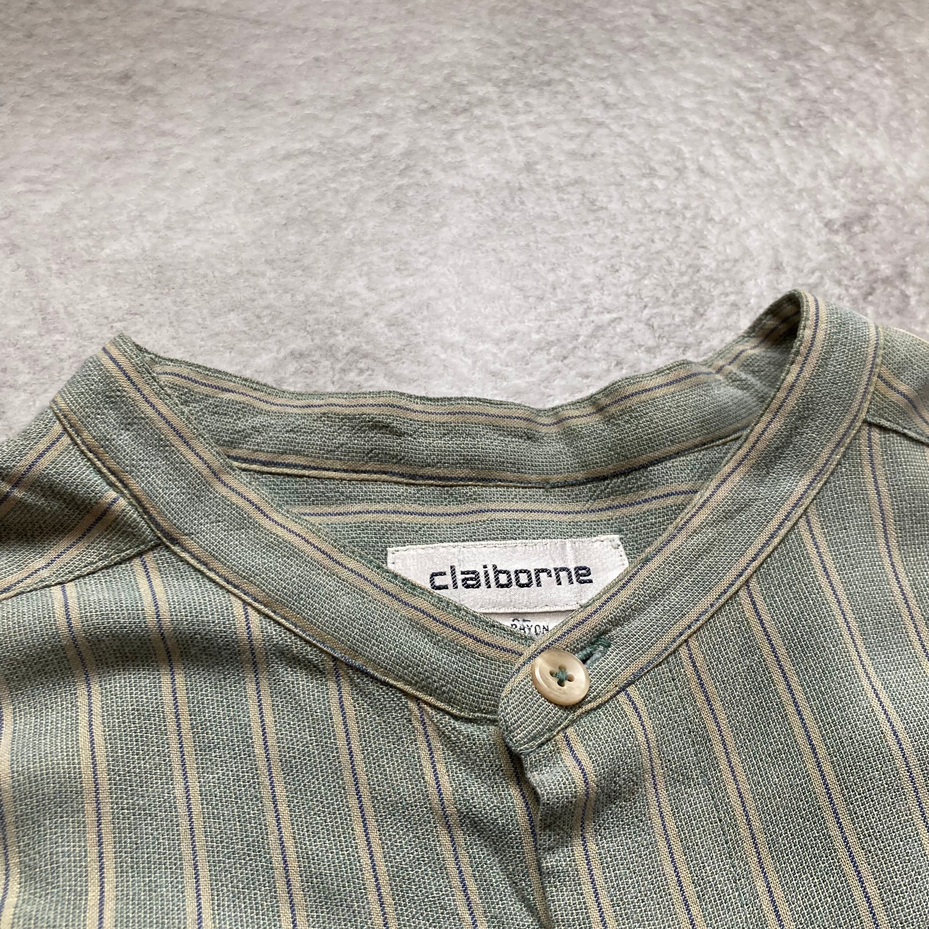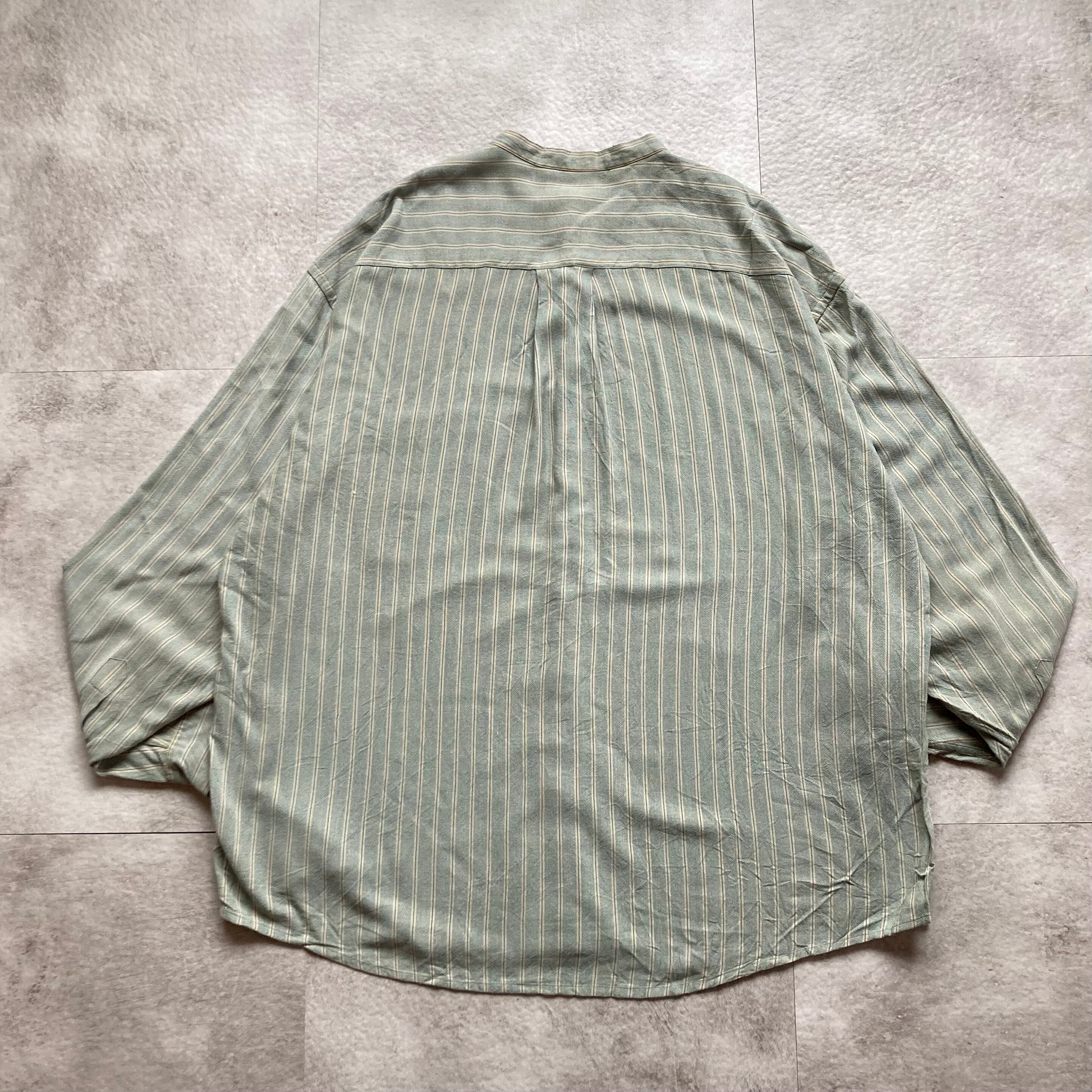 claiborneのノーカラーストライプシャツになります。レーヨン100%のためサラリとした柔らかな着心地で、サイズもXLの オーバーサイズ ビッグサイズ ですので、緩い雰囲気のシャツがお好きな方におすすめです。