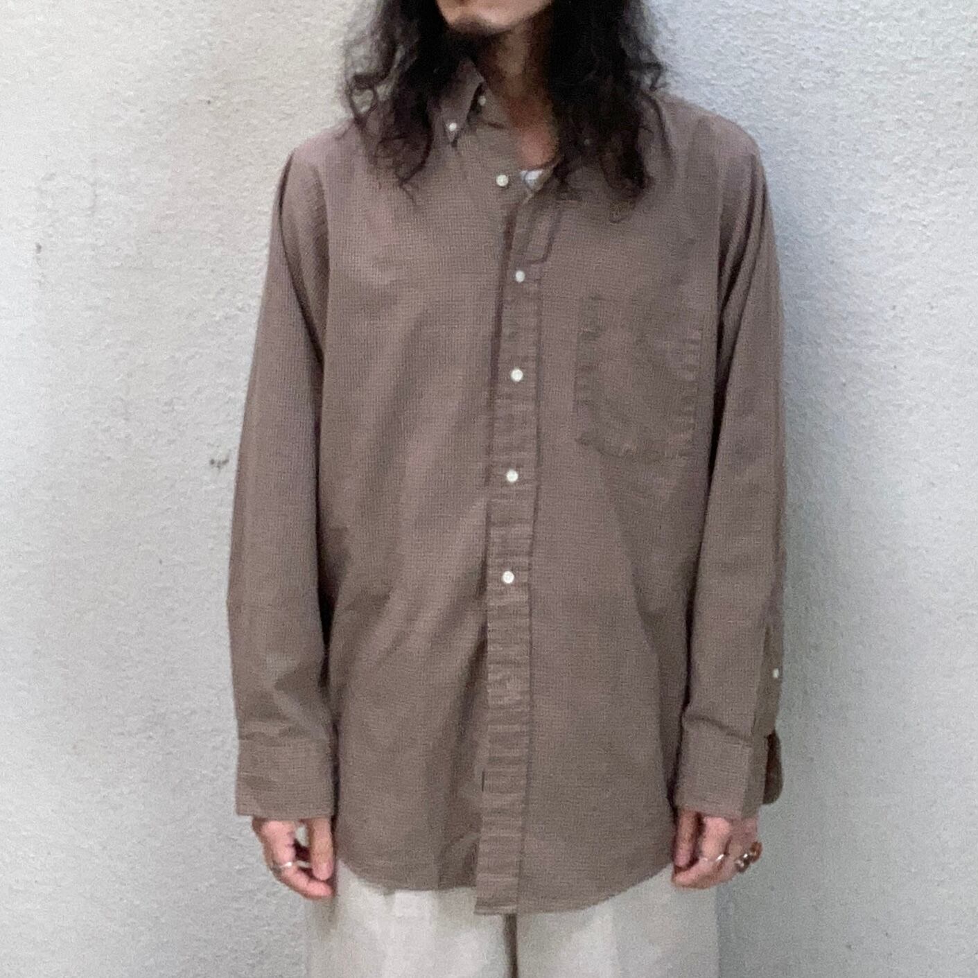 90s Arrow のボタンダウンチェックシャツになります。ブラウンカラーのボディに、細かなチェック柄がさりげなく素敵な1着です。