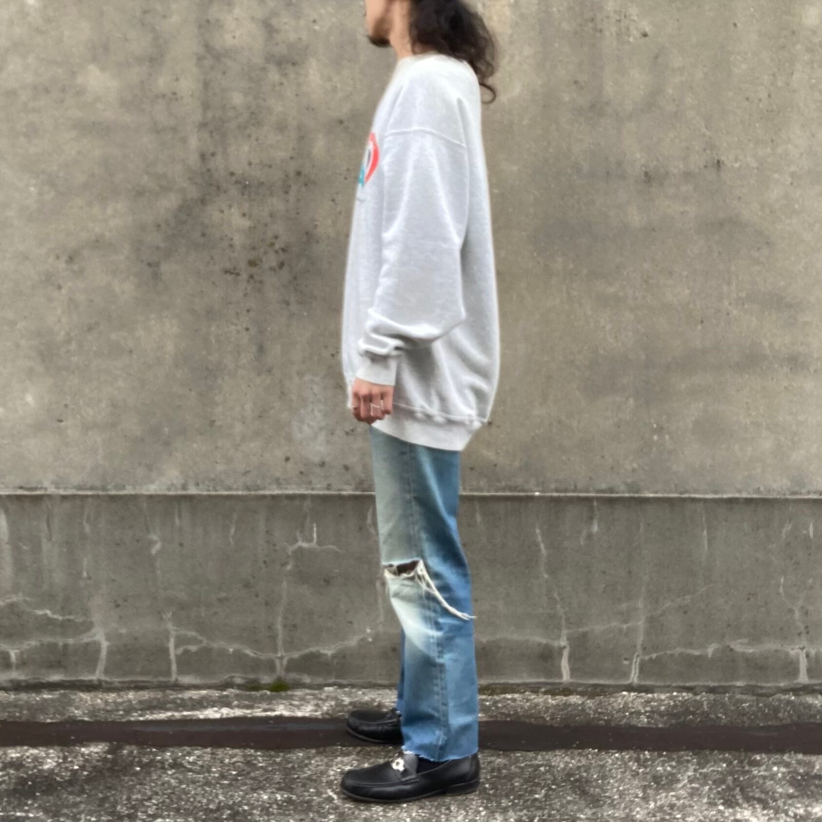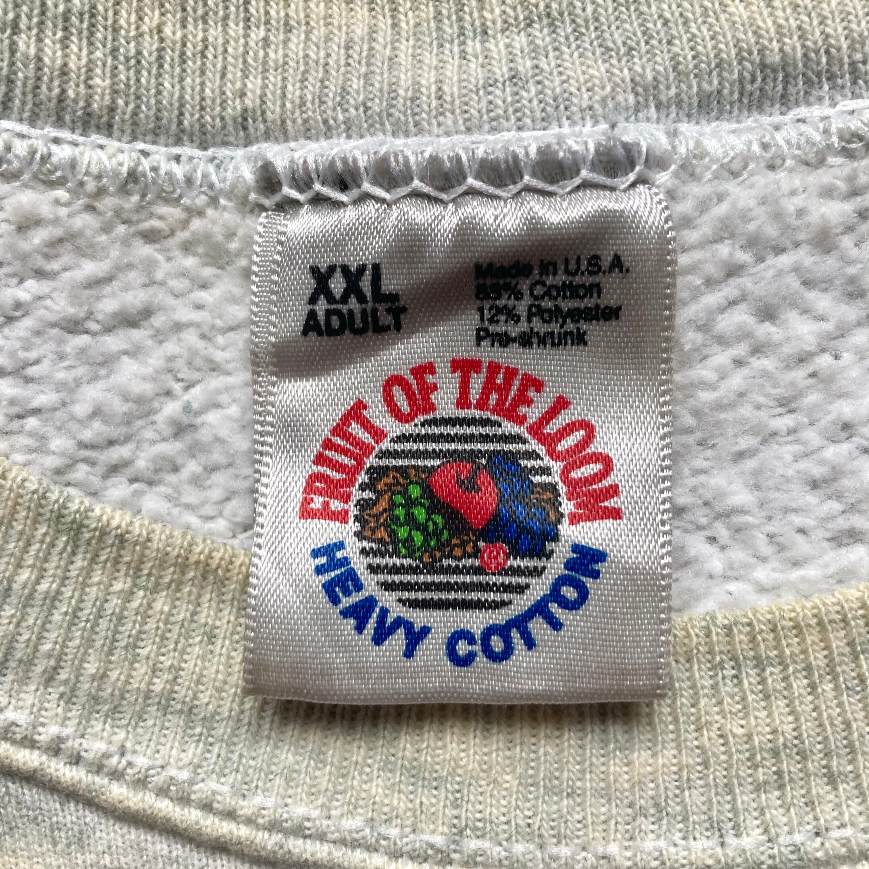90s アメリカ製のプリントスウェットになります。繊維製造・販売を行うアメリカの企業イラストがデザインされております。