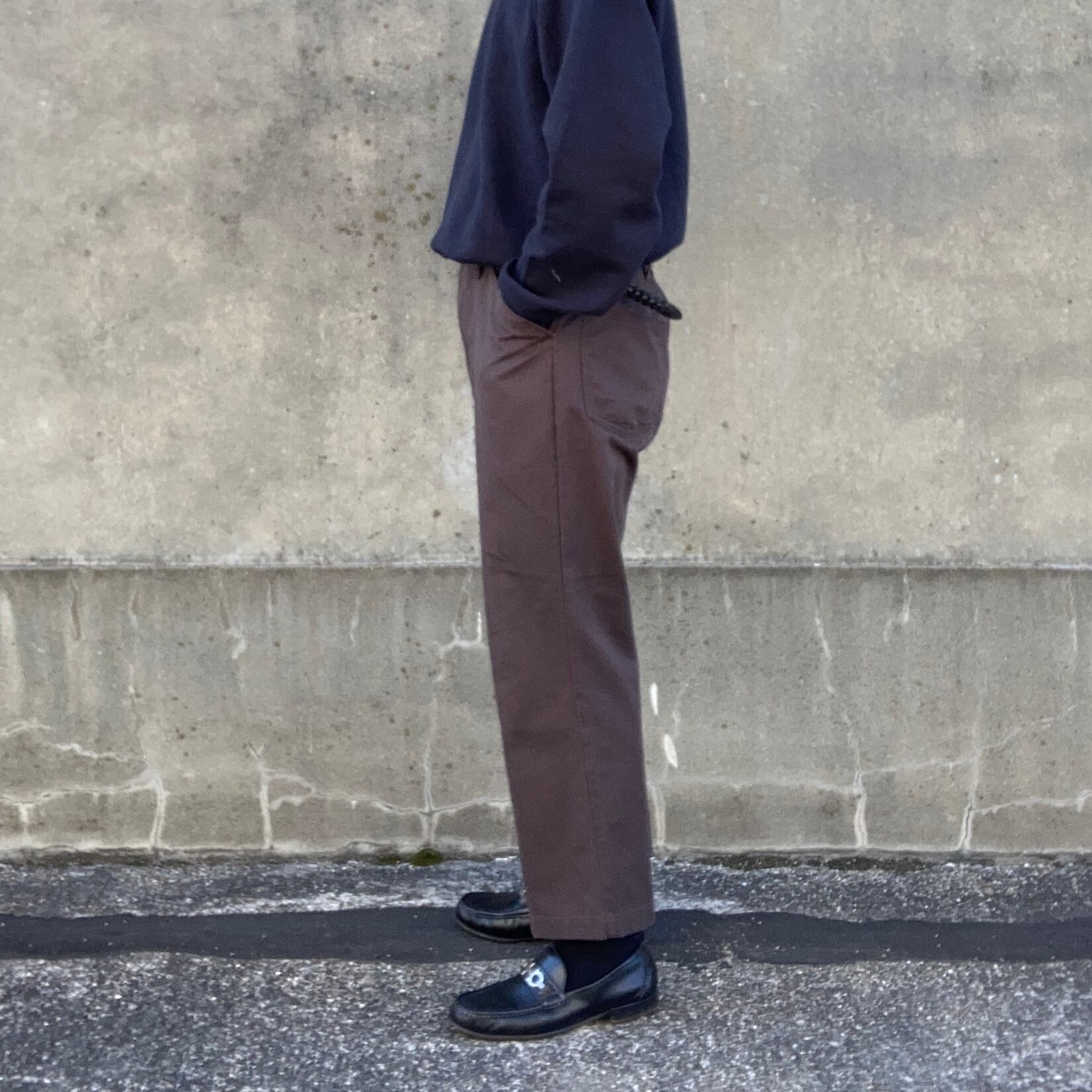 RED KAP のブラウンクロップドパンツになります。ブラウンの色味が落ち着いた雰囲気の一本です。薄手の生地感ですのでストレス少なく穿いて頂けるかと思います。