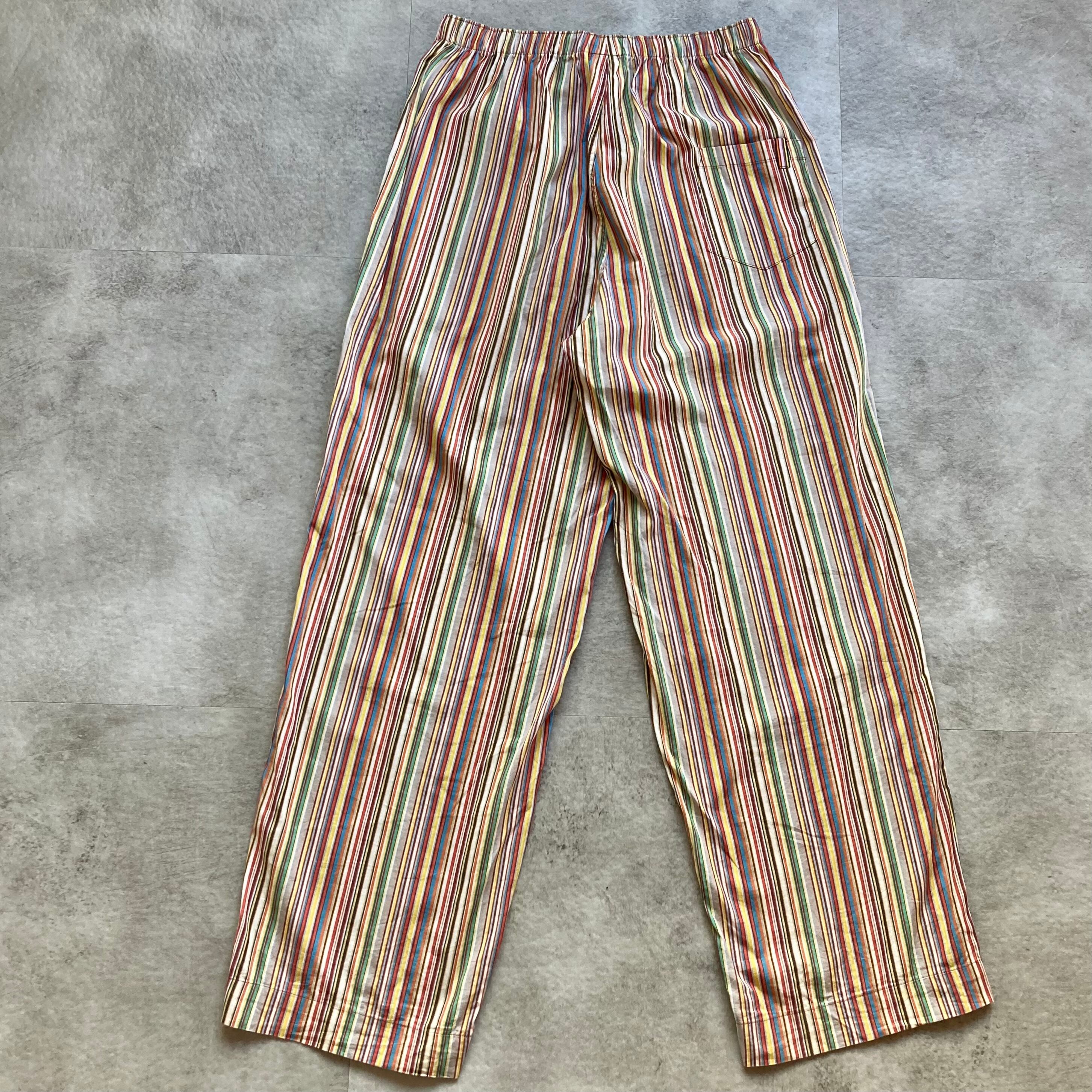 Paul Smith のストライプイージーパンツになります。マルチカラーの色味がポップな雰囲気の一本です。オーバーサイズ ビッグサイズ のシルエットですので、緩くラフに穿いて頂けるかと思います。春夏はTシャツやカットソー等と相性良さそうです。