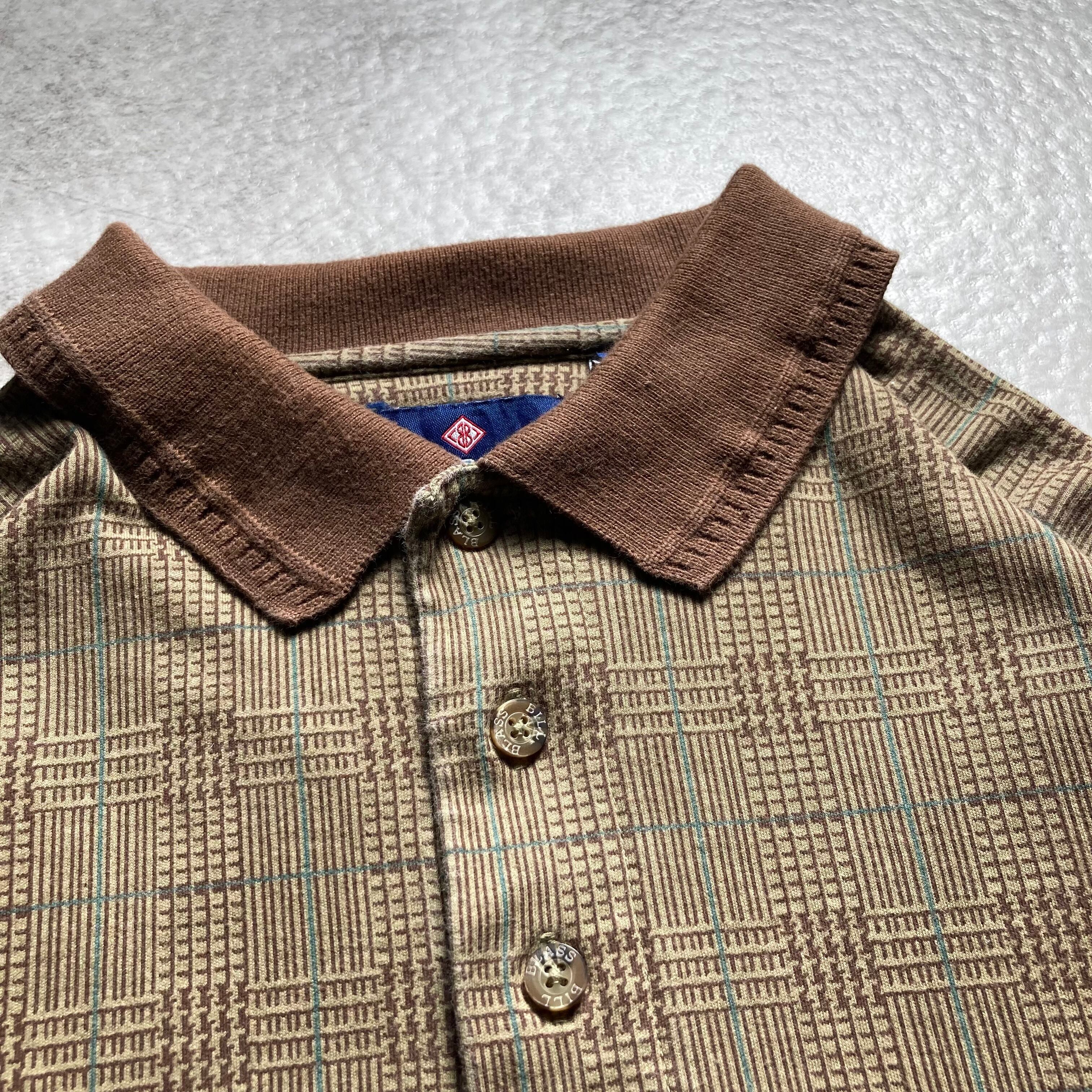 BILL BLASSのチェック柄ロングポロシャツになります。ライトブラウンのチェック柄が古着らしい雰囲気の1着です。