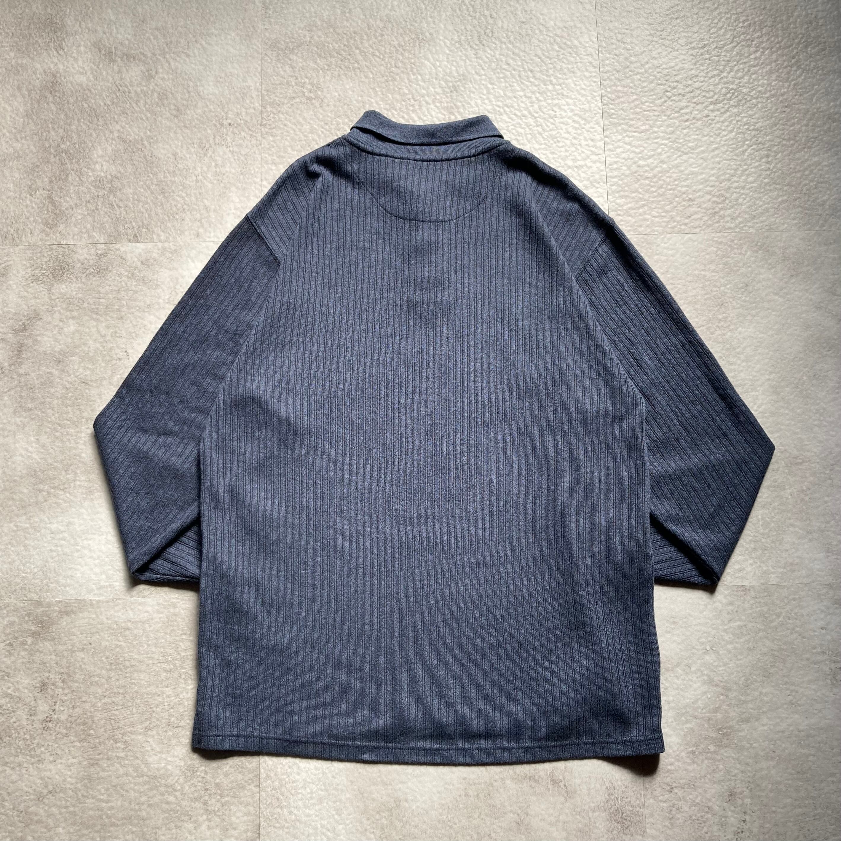 GEORGEのストライプロングポロシャツになります。ネイビーカラーのストライプ柄が落ち着きあり爽やかな雰囲気の1着です。