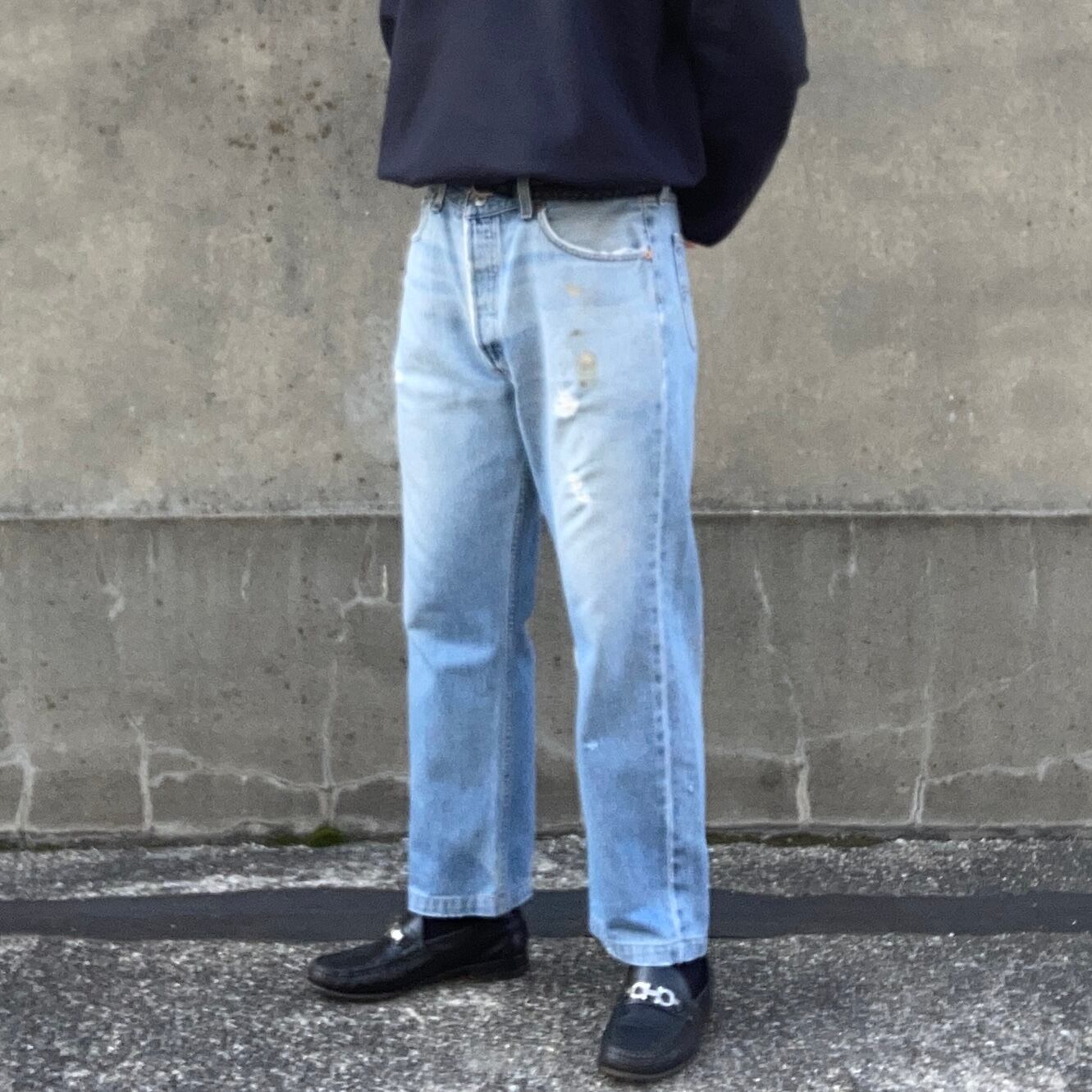 1997年Canada製の一本になります。程よくゆとりのあるくるぶし丈ですので、脚のラインを綺麗に魅せてくれます。ダメージや汚れが御座いますが、そこも含めてvintage denimらしい味・雰囲気として楽しめる一本になるかと思います。