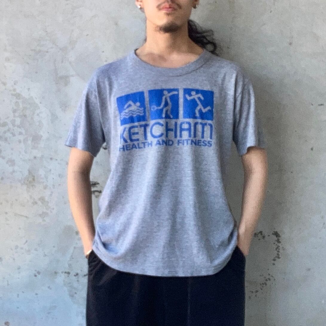 80s USA製の1着になります。テロテロとした薄手の生地感ですので、1枚では勿論のこと、 シャツ や カーディガン などのインナーとしてもおすすめです。グレー×ブルーのカラーリングも爽やかな雰囲気です。