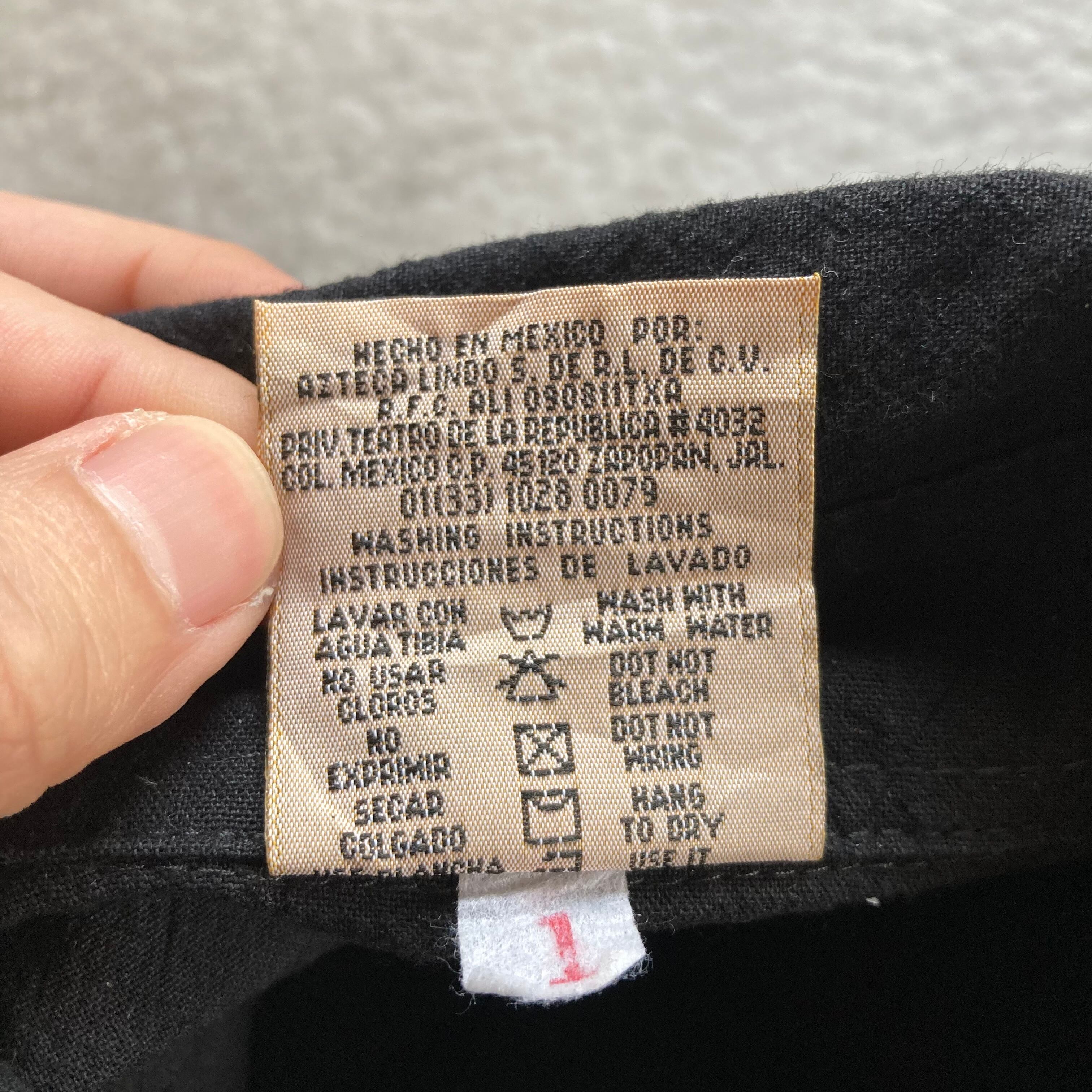 ブラックカラーのメキシカンシャツになります。2本のストライプ刺繍が特徴的な1着です。コットン100%生地ですが、素朴で粗めの風合いが ブラック リネン に近い雰囲気です。 スラックス や デニム 、夏は パナマハット などを合わせると雰囲気良さそうです。