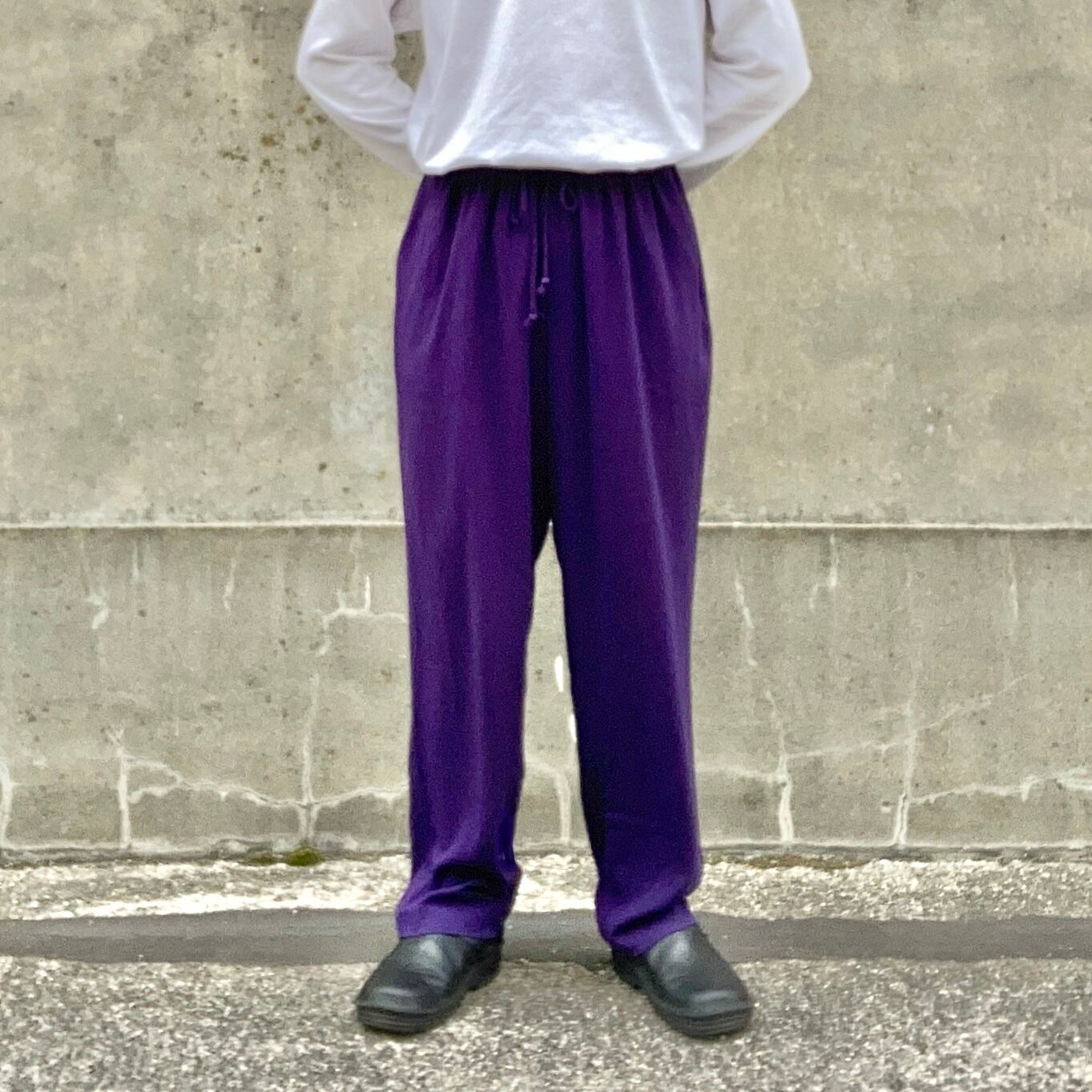 alfred dunner のイージーパンツになります。パープルの色味にゆとりあるシルエットがラフな雰囲気です。素材表記無しですが、リネン混合のような軽やかな生地感をしており、春夏時期にピッタリの雰囲気の一本かと思います。