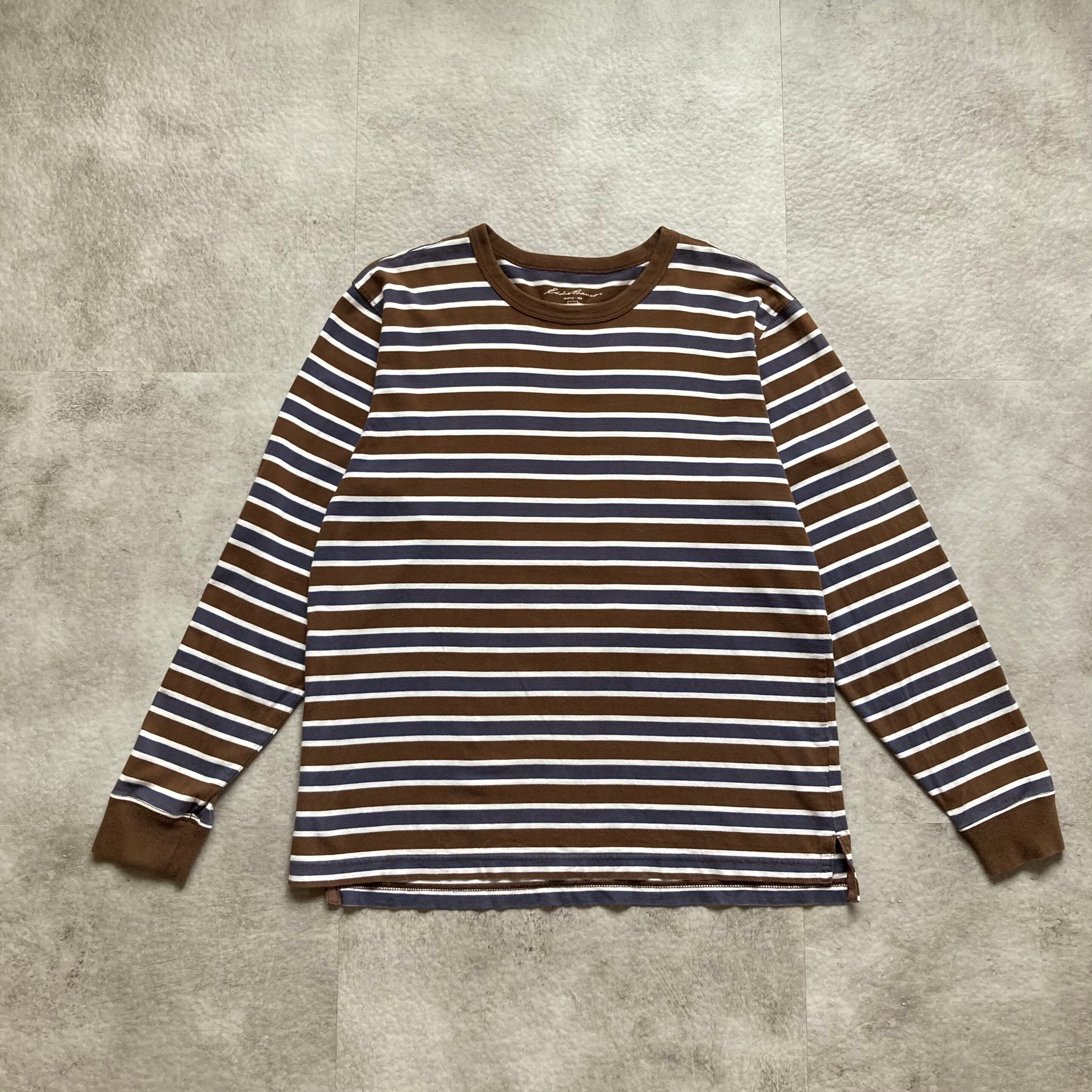 ブラウン×ブルーのカラーリングが落ち着いた雰囲気の1着です。1枚では勿論、 カーディガン や シャツ などのインナーとしても重宝するかと思います。何かと便利な1枚ですのでおすすめです。