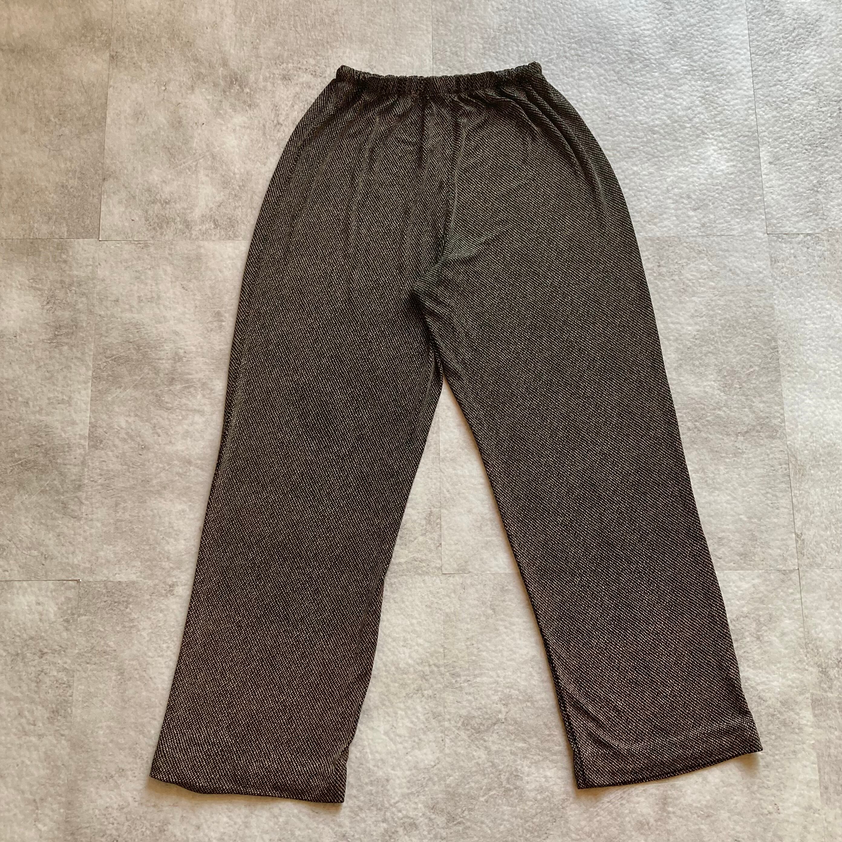 brown colorのeasy pantsになります。ゴムのような伸縮性のある生地感に加え、全体のポツポツとした生地の織り模様が特徴的な一本です。wide pantsに近いシルエットですので、歩く度にゆらゆらと波打つような動きを見せてくれます。色味も落ち着いておりますので、様々な春夏のトップスと相性良さそうです。
