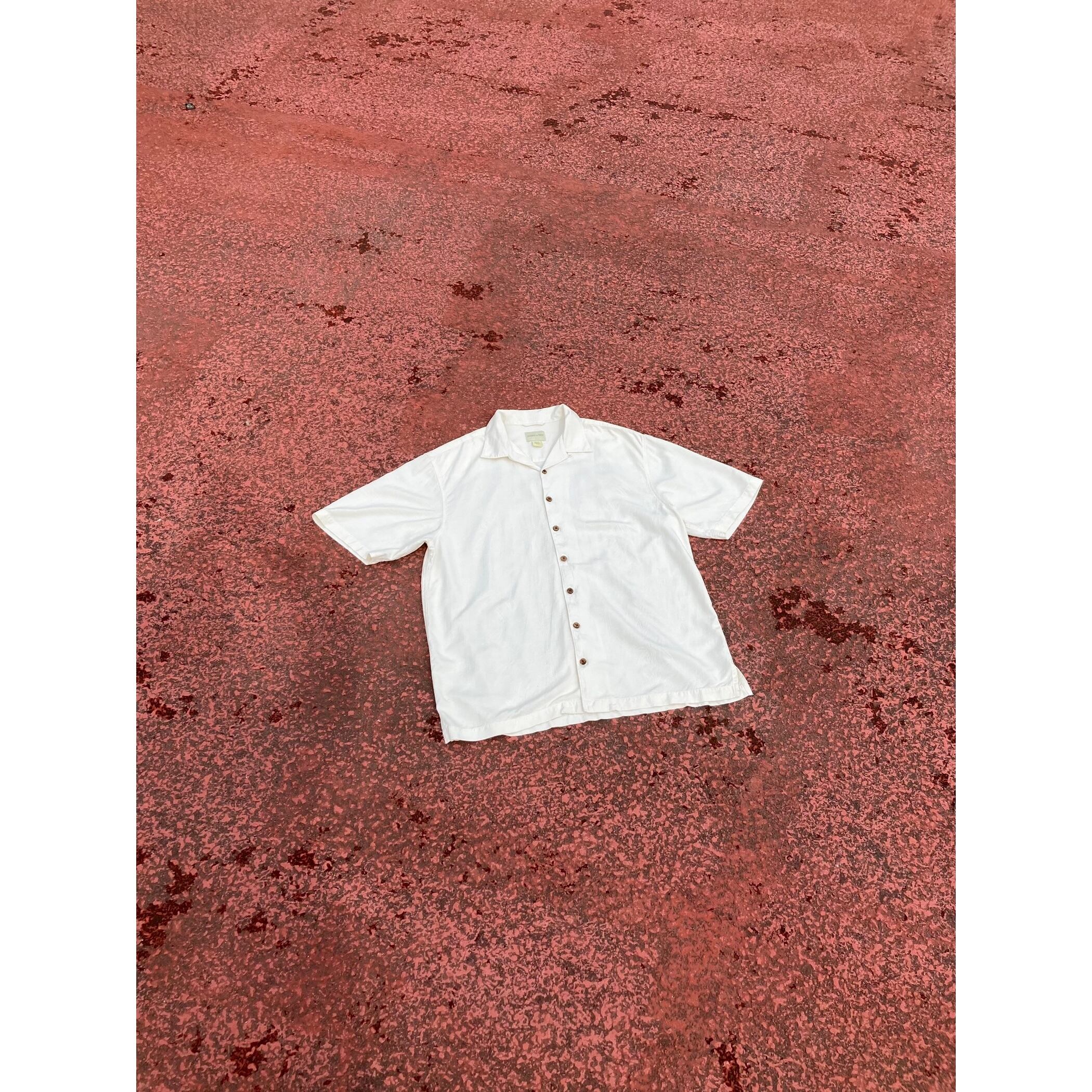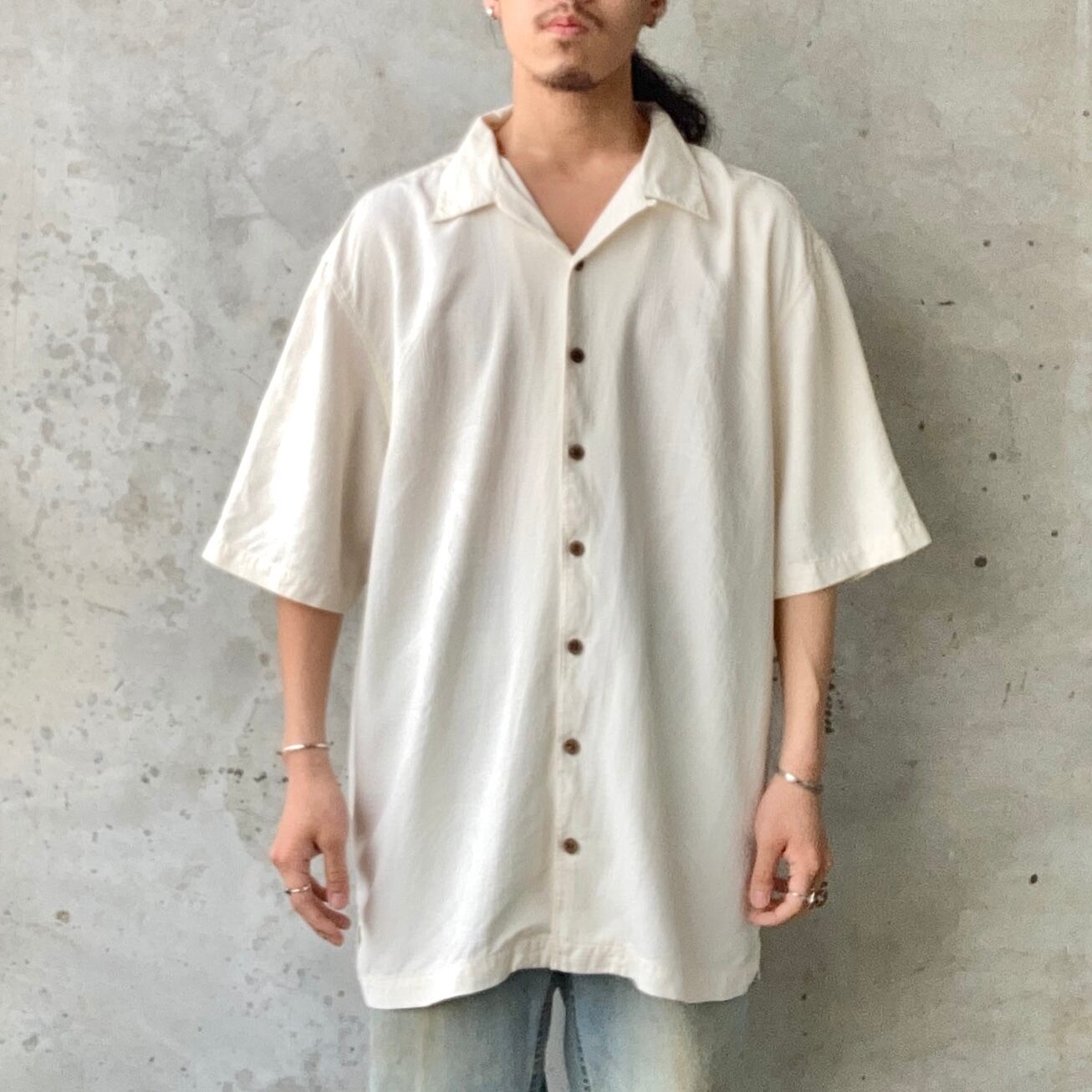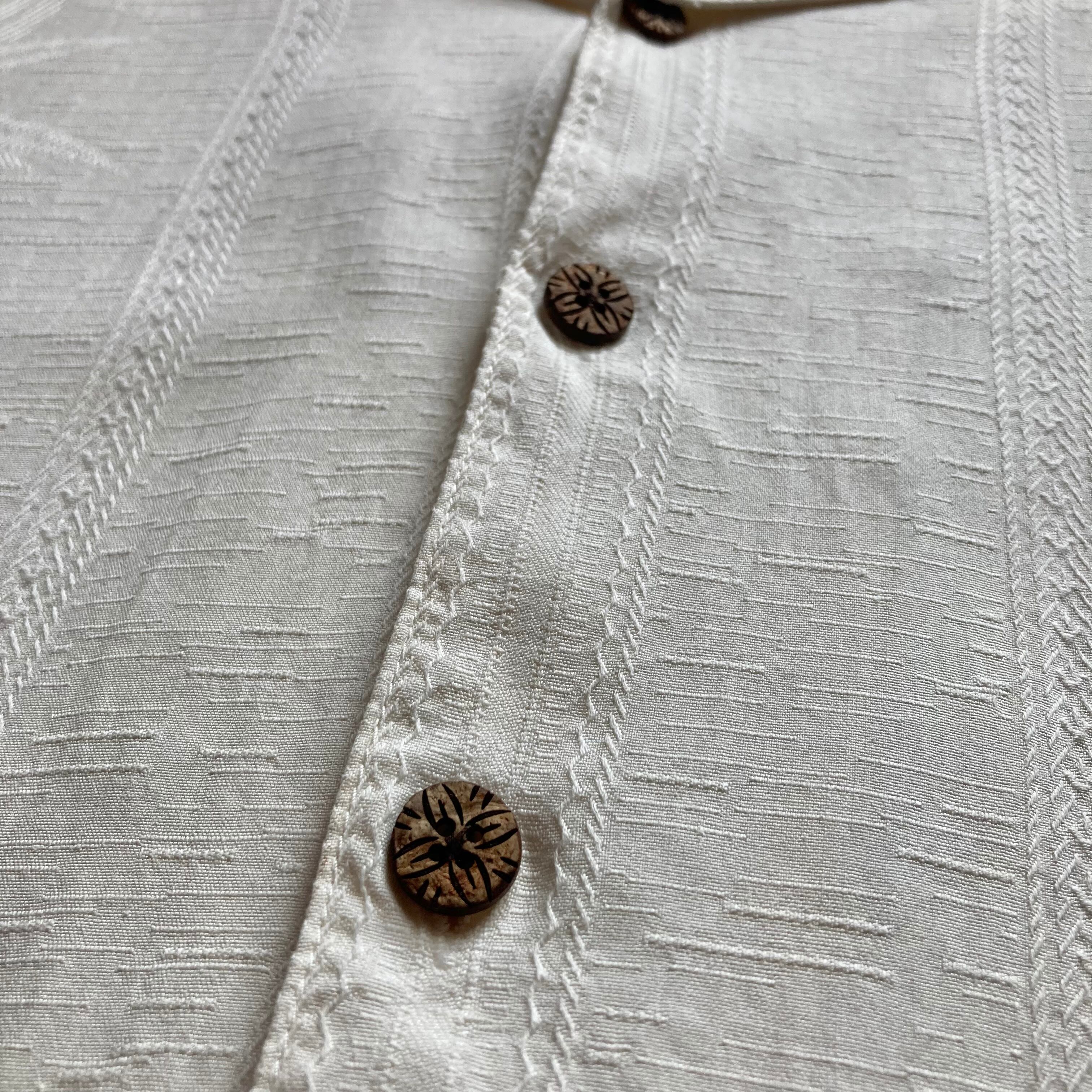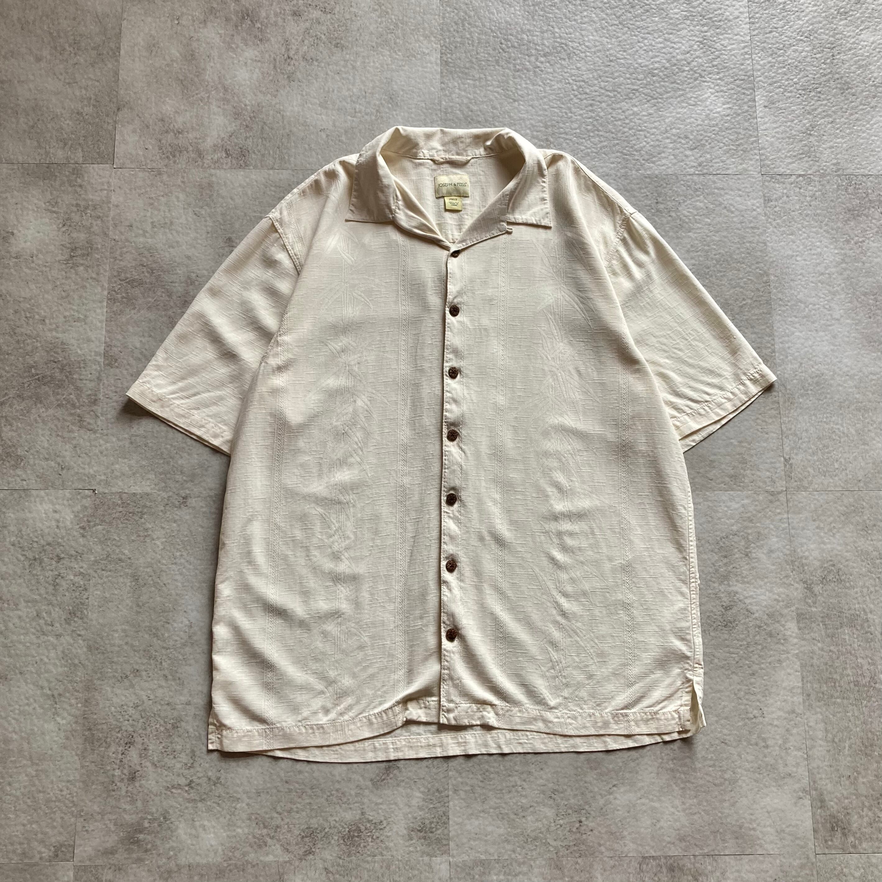 アイボリーの素朴な色味に加え、うっすらと施された柄がさりげなく素敵な雰囲気です。テロっとした柔らかな生地感も着ていて気持ち良いです。デニム や イージーパンツ など様々なボトムスと相性良いかと思います。