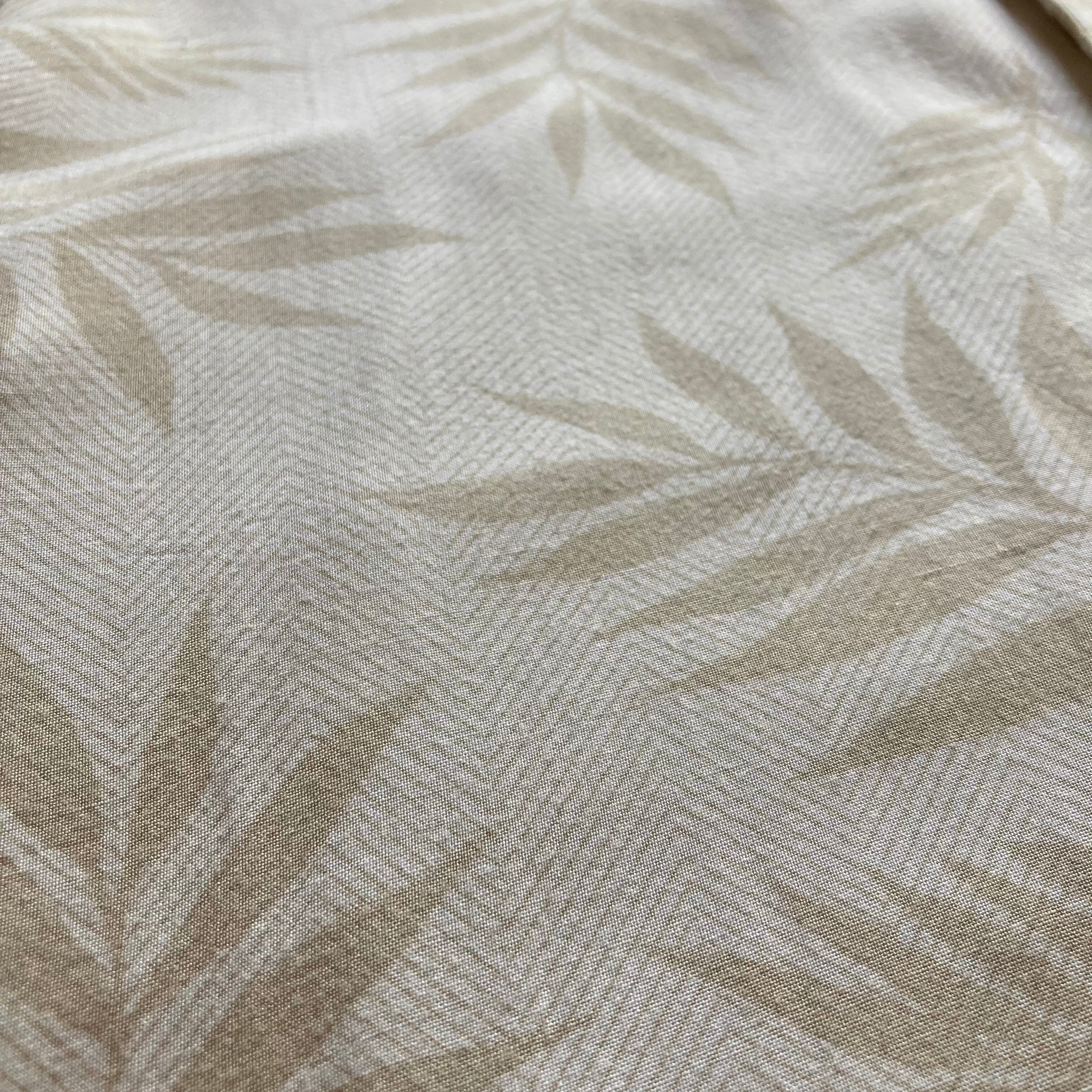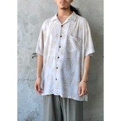 100%レーヨン生地の総柄オープンカラーシャツになります。主張の強すぎないベージュの総柄ですので、素朴で落ち着いた大人の雰囲気があります。モチっとしたレーヨンの肌触りも非常に気持ち良く、ずっと触れていたくなる1着です。