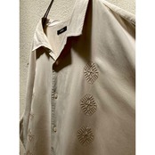 ボディ前面に刺繍が施された開襟シャツになります。silk100%ですのでサラリとした清涼感の