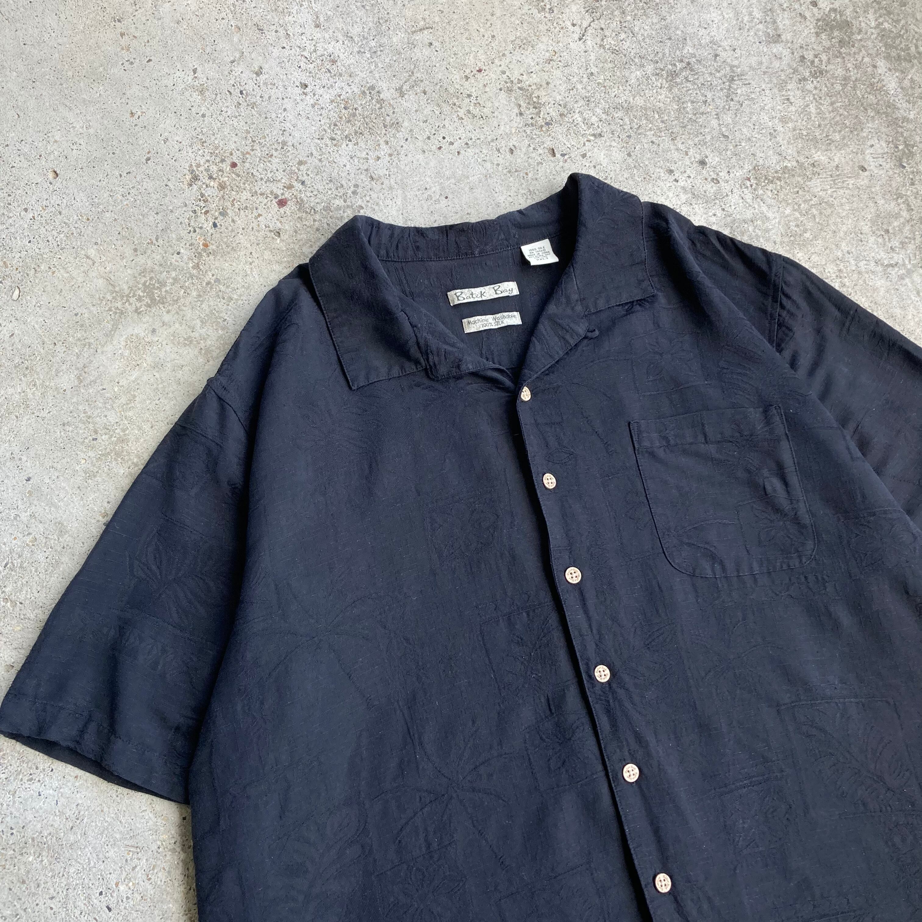 black bodyに、2XLの オーバーサイズ シルエットですので、シックな雰囲気ながらも緩くラフに着て頂けそうです。近づいて見てみるとボタニカル系の総柄も施されており、さりげなく素敵な1着です。