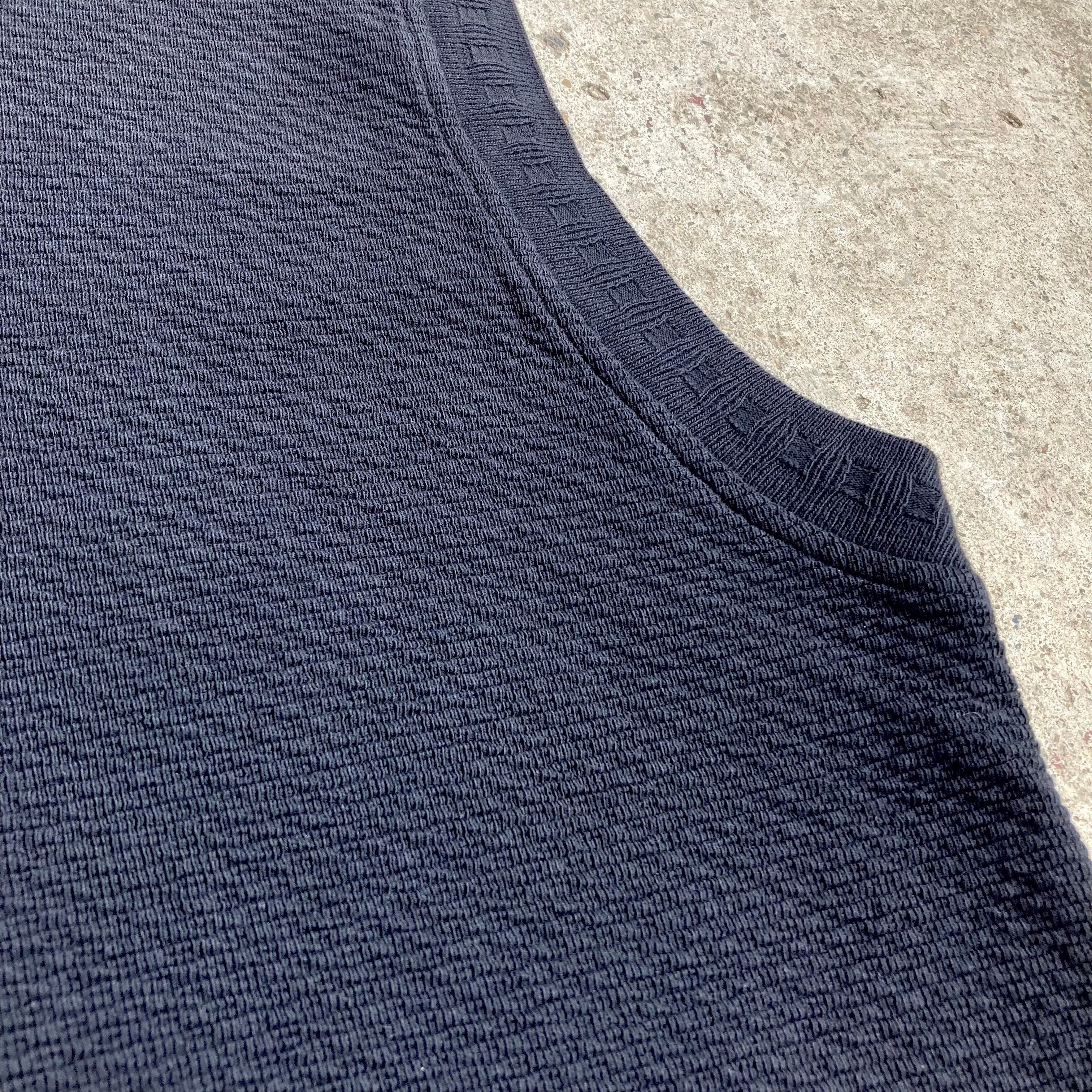 Canada製のvネックベストになります。しっかりとした生地感のコットン生地になりますので、通年で着用して頂ける便利な1着になるかと思います。black colorというのも重宝するポイントです。夏はteeと一緒にどうぞ。