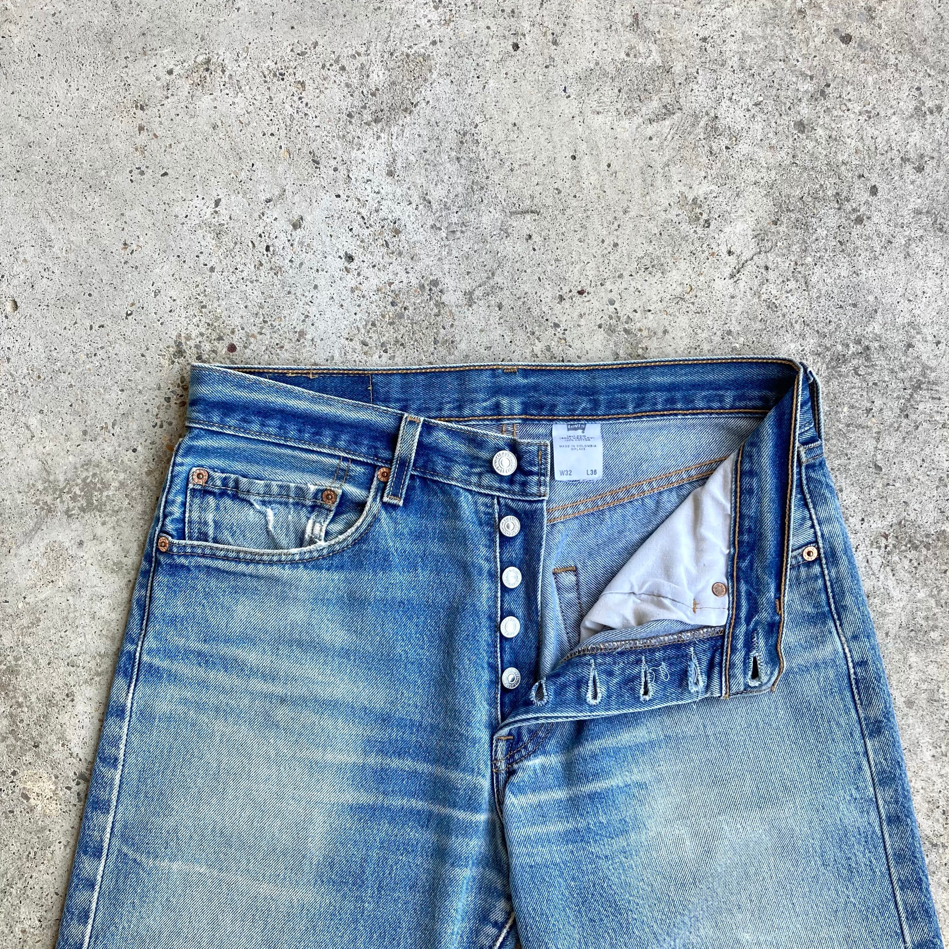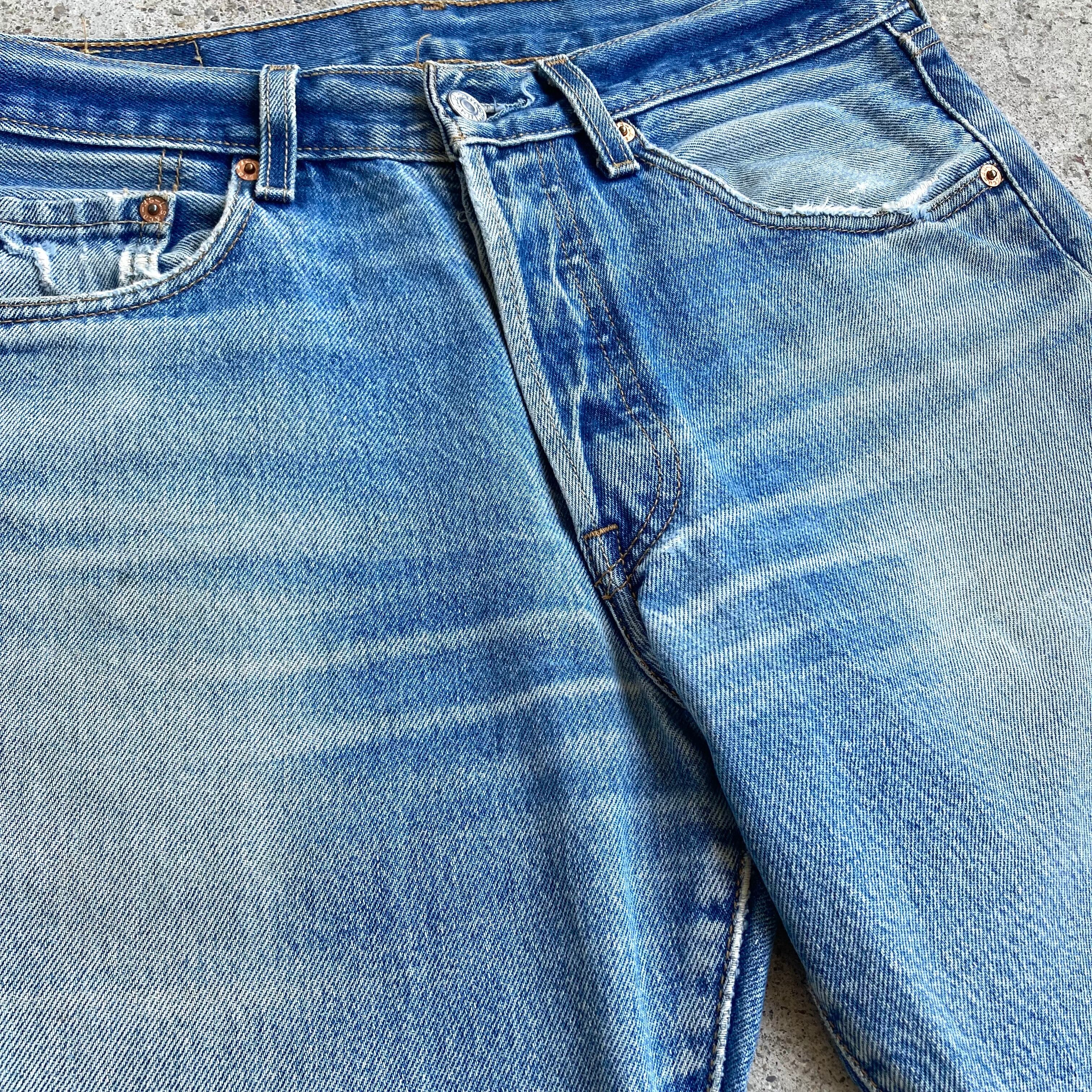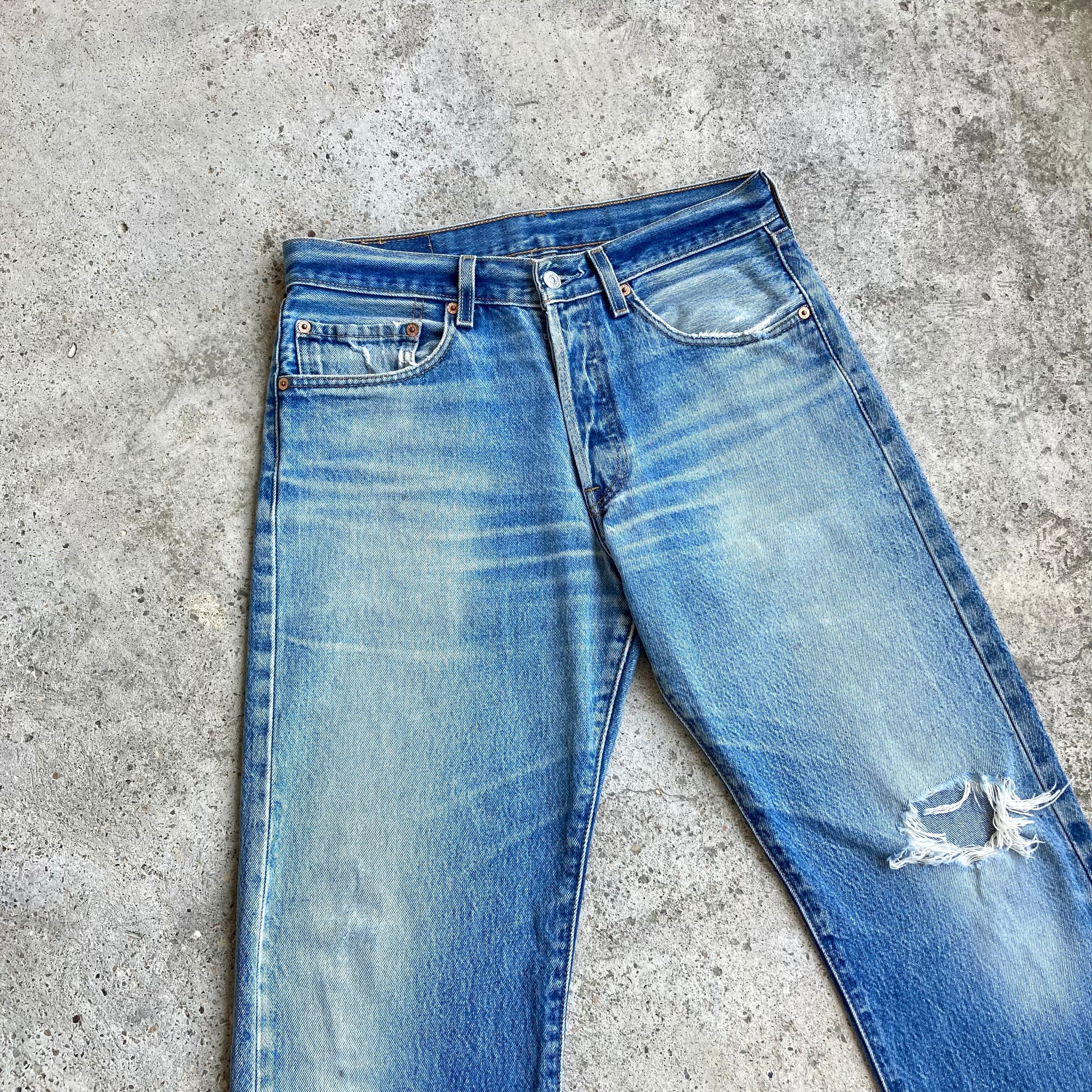 全体の絶妙な色味と、左膝のダメージ部分が非常に良い雰囲気の一本となっております。