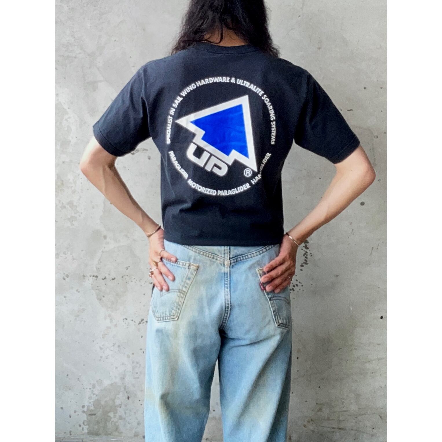90s USA製の print teeになります。black bodyにblue colorのバックプリントが特徴的な1着です。