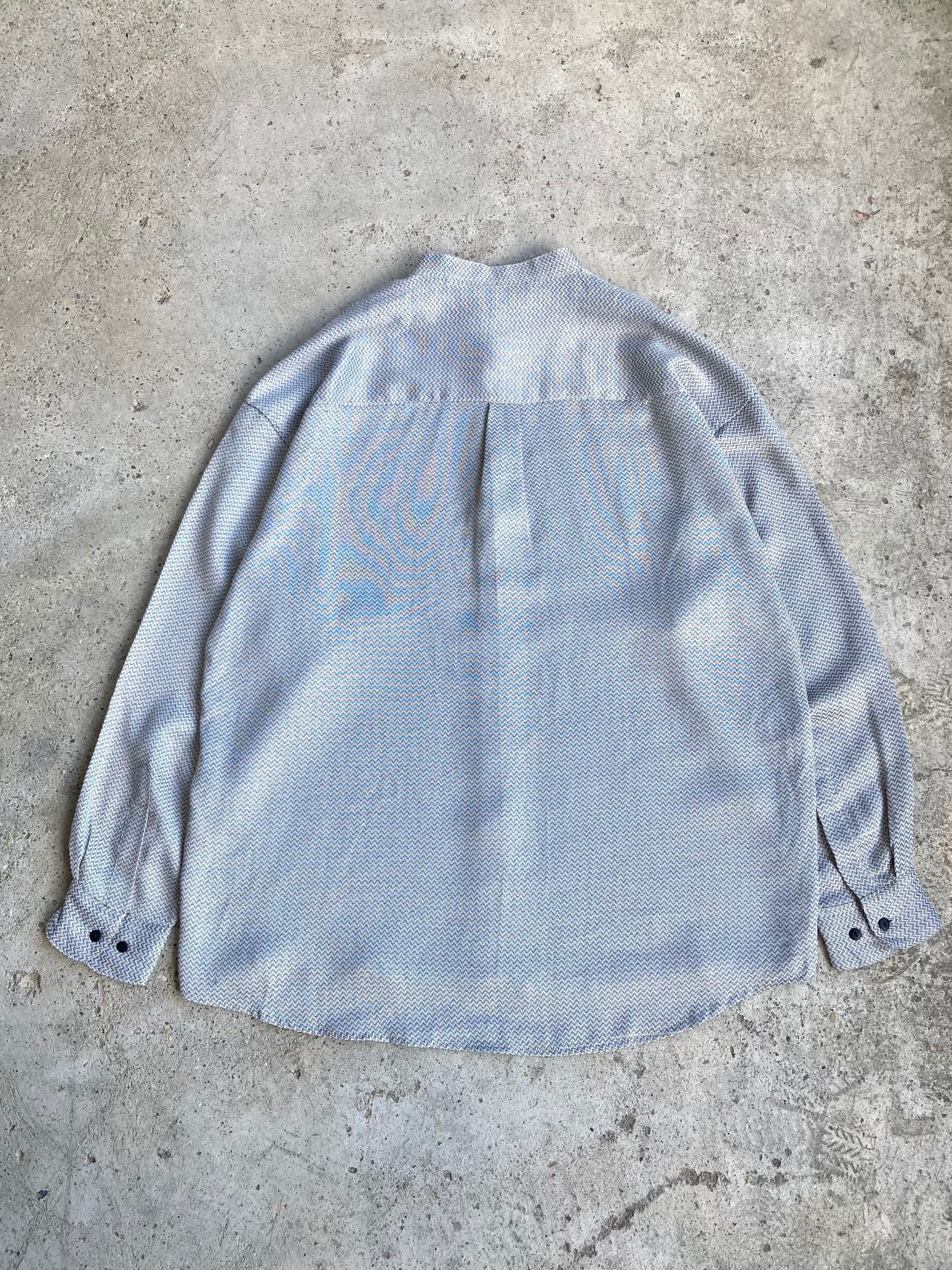 シルバーグレーのボディに、波形の総柄が施された1着になります。サイズXLの オーバーサイズ シルエットですので、緩くラフに着て頂けるかと思います。