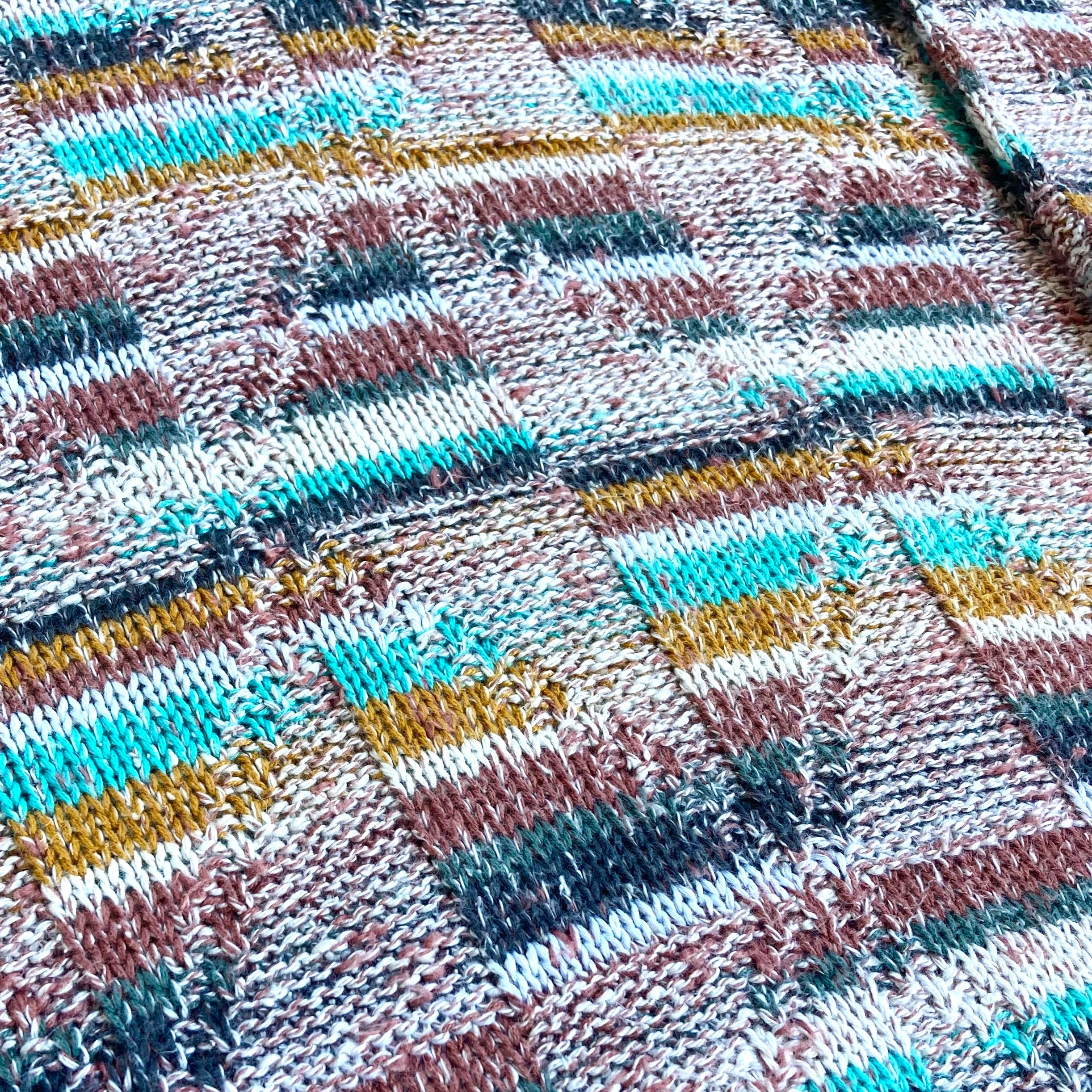 オレンジやブルーなどミックスされたカラーデザインが個性的で可愛らしい1着です。