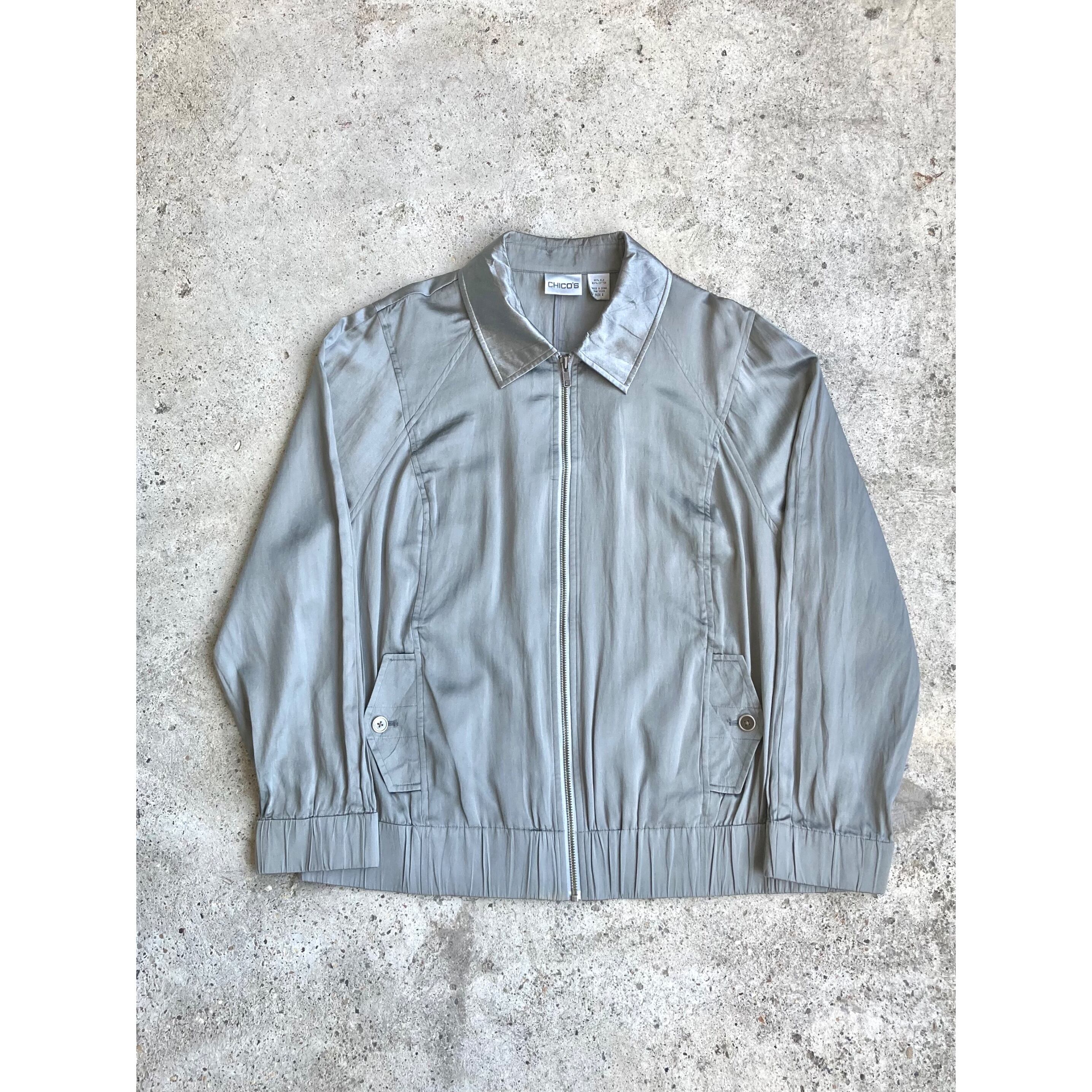 無機質で未来的な雰囲気のメタリックシルバージャケットになります。シルクがミックスされておりますので、サラサラと軽やかな着心地の1着です。