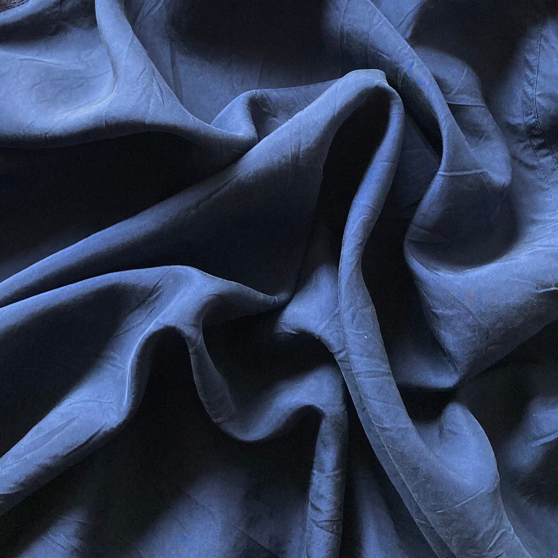 ネイビーカラーのシンプルなデザインに、ふわふわと柔らかく軽やかなsilkの生地感が特徴的な1着となっております。