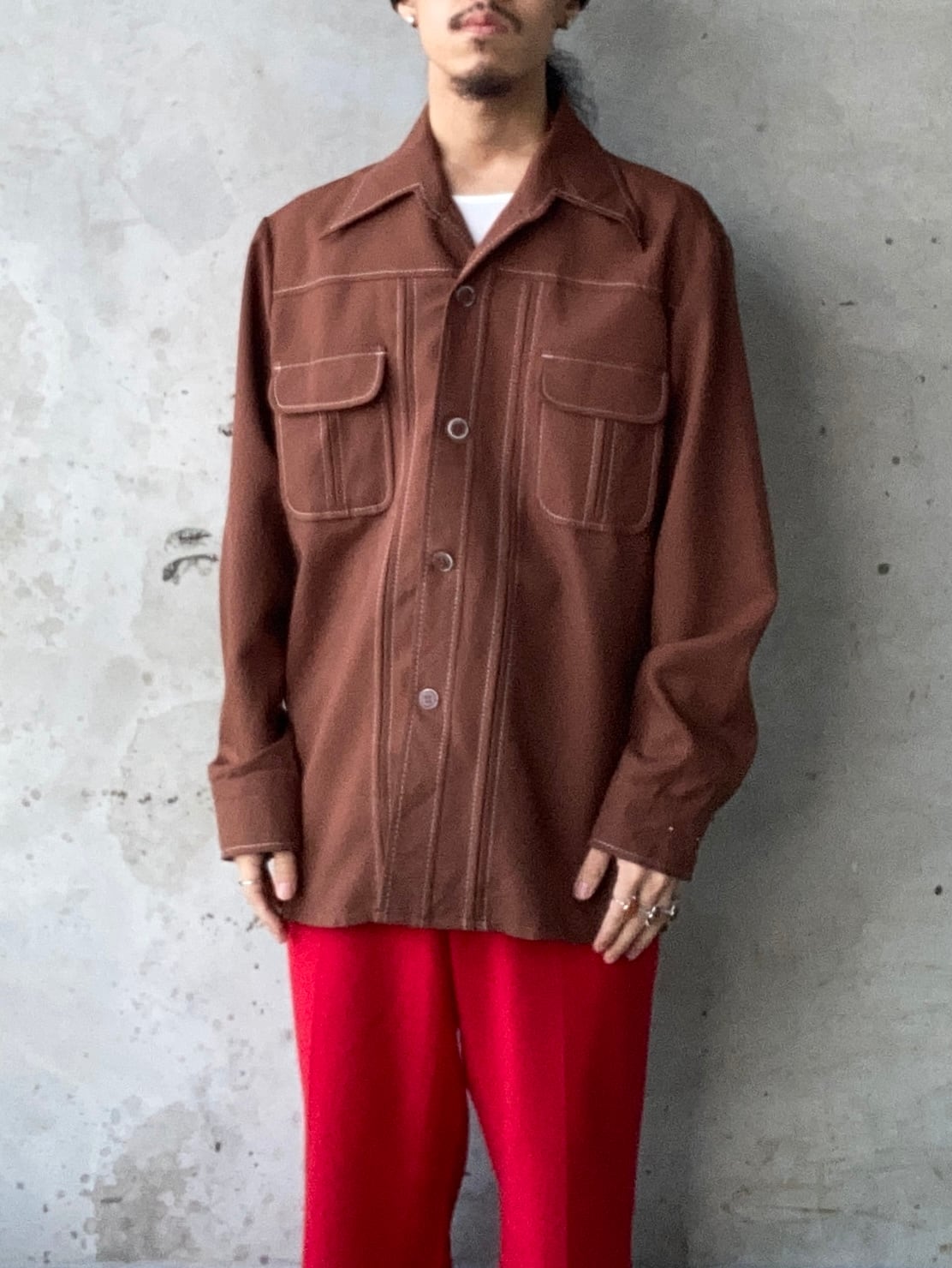 70s特有のロングポイントの襟が特徴的で、所々に施されたステッチも可愛らしいです。