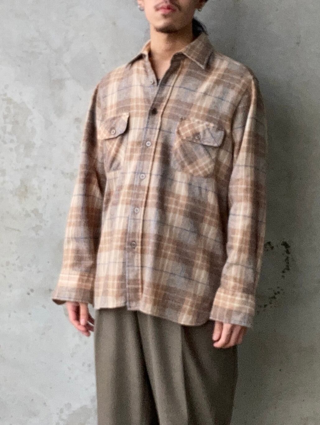 60s〜70s ARROW のウールチェックシャツになります。ほっこりとした優しい風合いの生地感が特徴の1着です。damage denimやslacksなど、様々なボトムスと相性良さそうです。