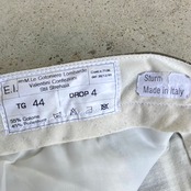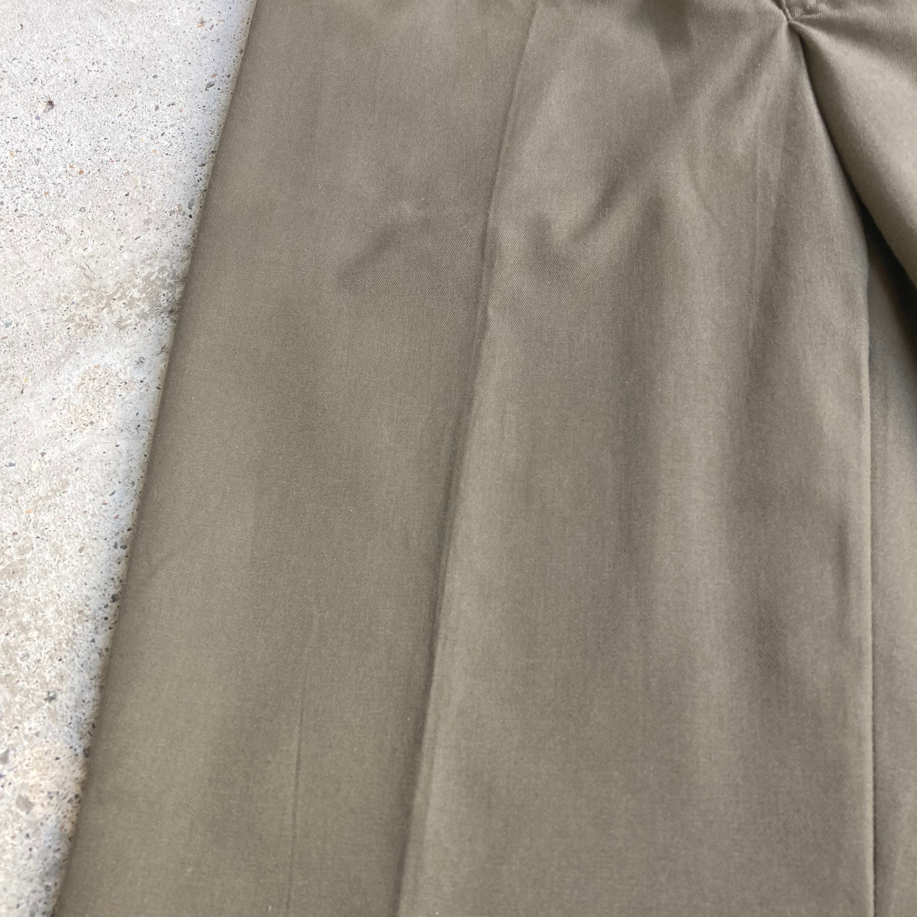イタリア軍放出のミリタリースラックスになります。olive brownの秋らしい雰囲気の色味が素敵な一本です。ポリ配合の軽い生地感となっておりますので通年で穿いて頂けます。シルエットも適度に太さがあり絶妙です。