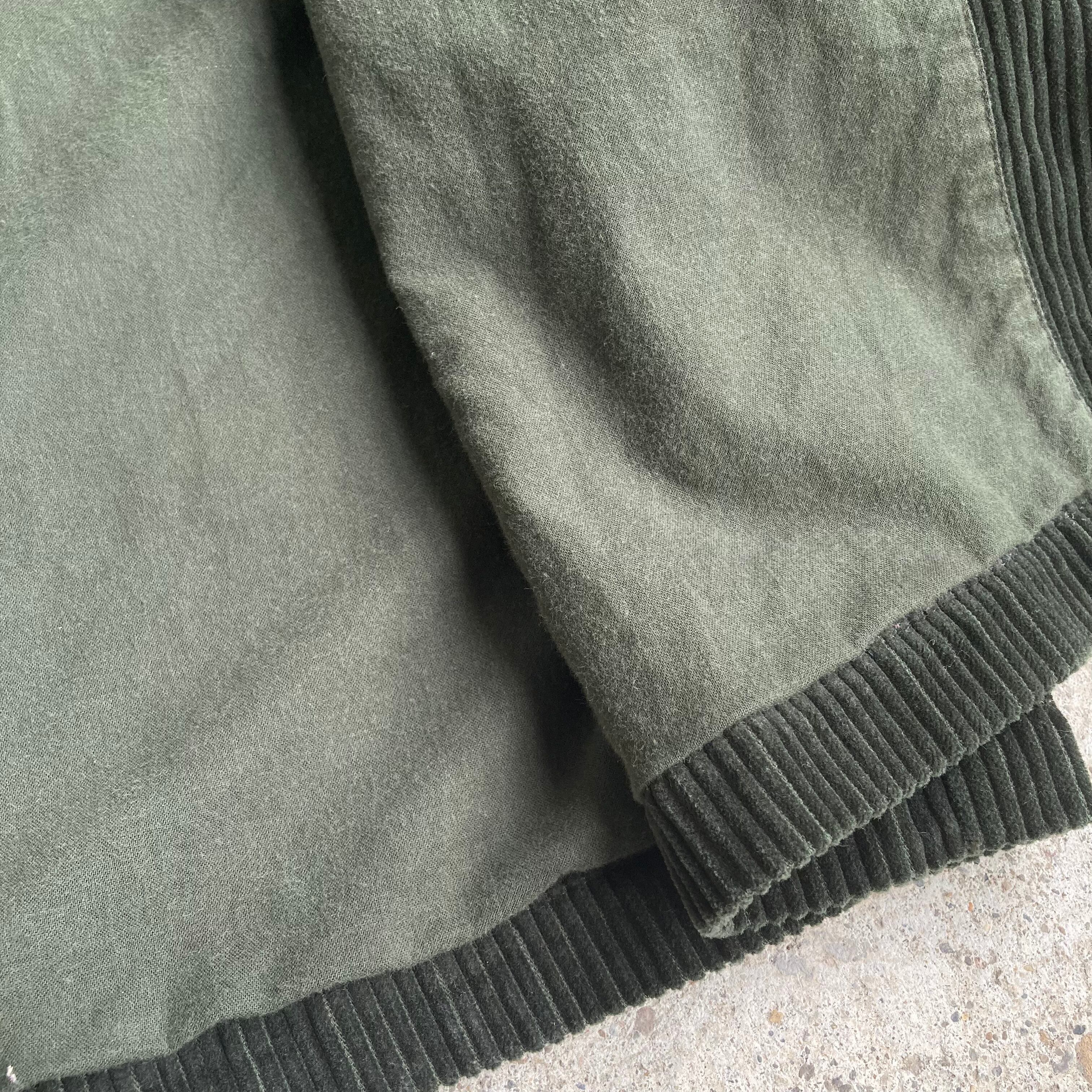 エディーバウアーのコーデュロイジャケットになります。ダークグリーンの色味と太畝コーデュロイが秋らしい雰囲気の1着となっております。ladies商品ですが、XLの オーバーサイズ ですのでmensでも問題無く着て頂けると思います。