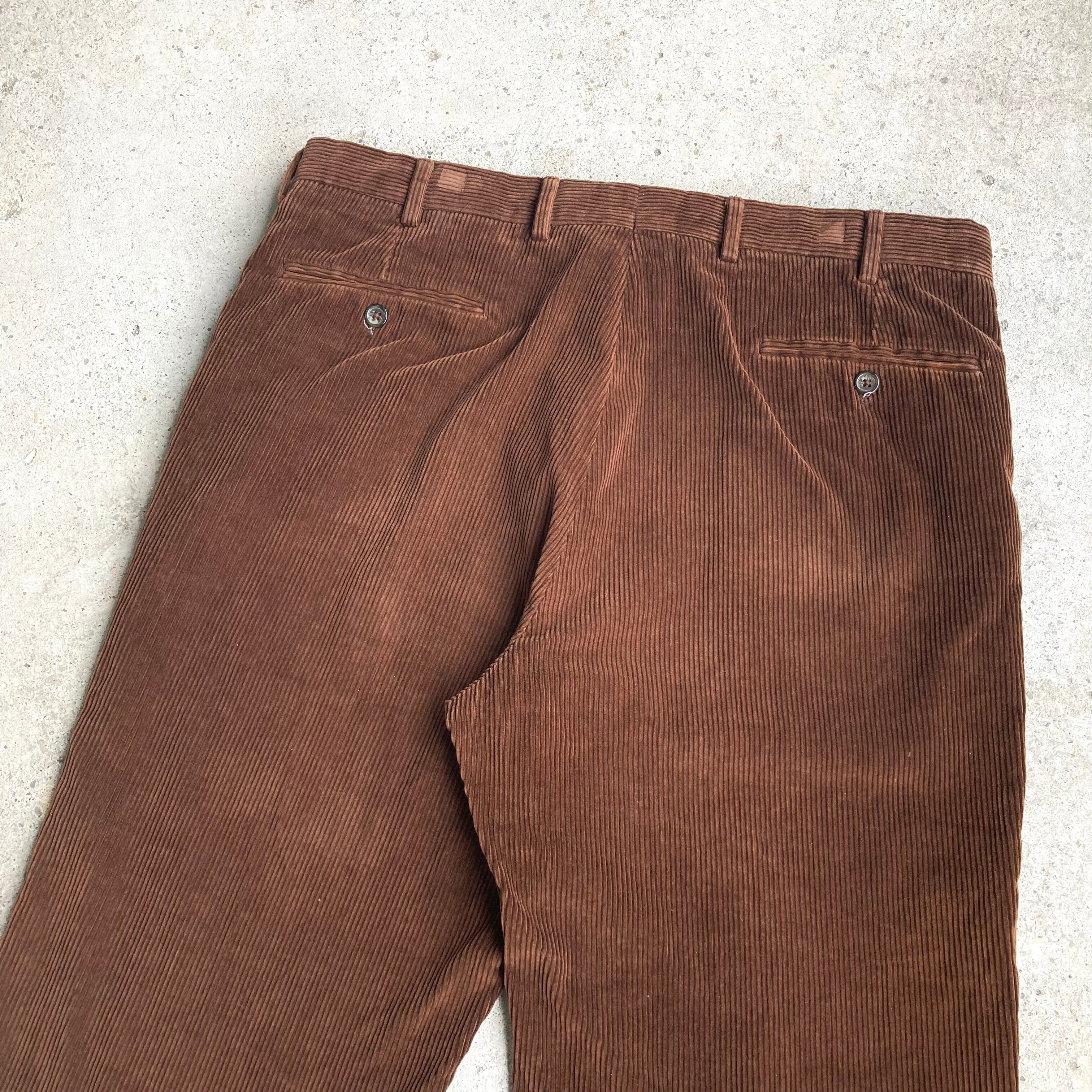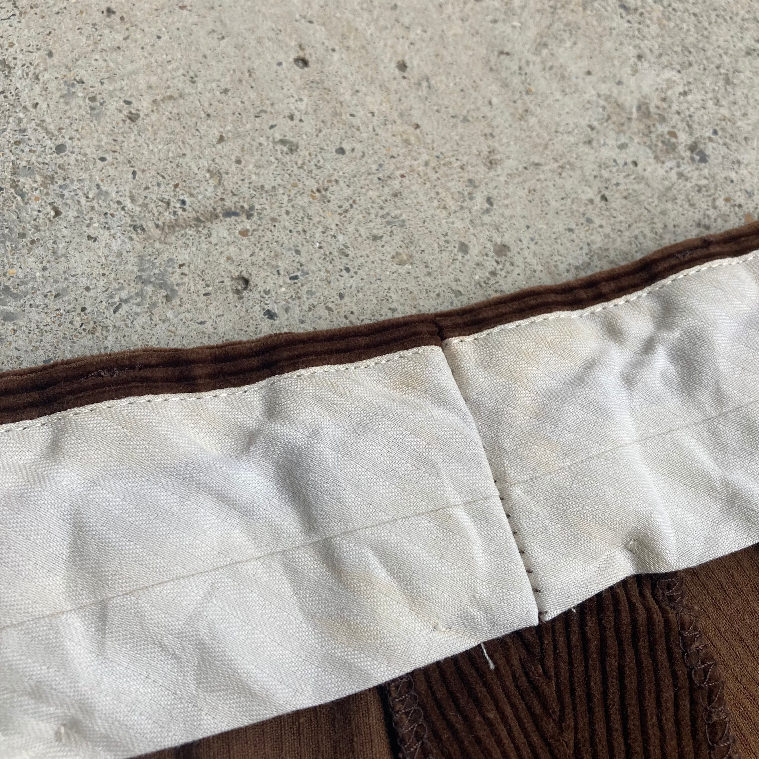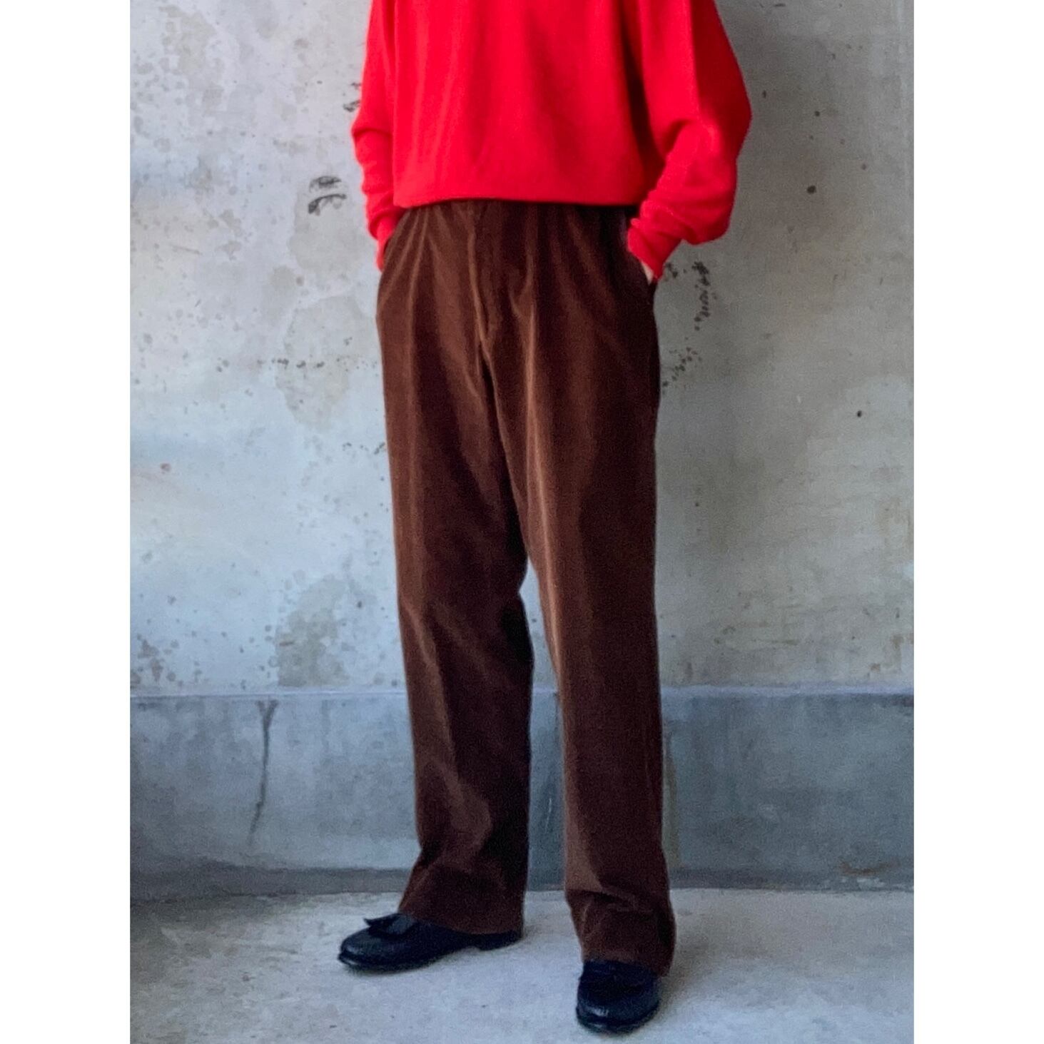 ブラウンカラーのコーデュロイパンツになります。太畝コーデュロイが秋らしい雰囲気の一本です。サイズ不明ですが、着用感としてはL〜XLほどのオーバーサイズとなっております。