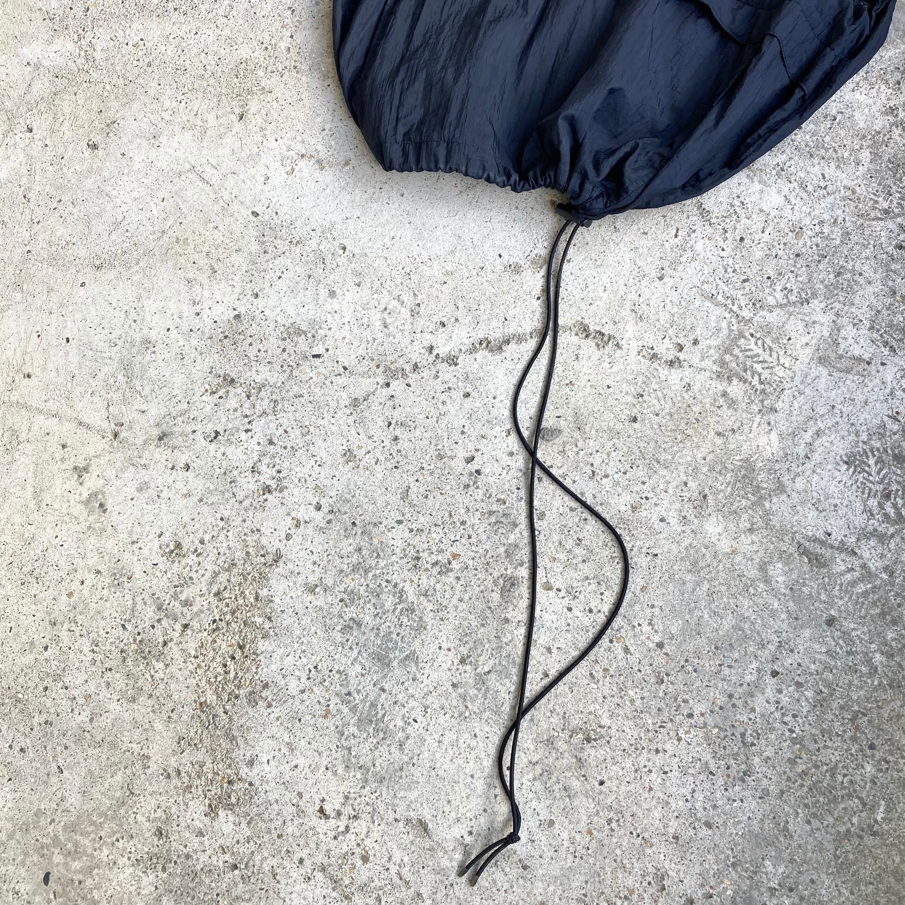 sizeLの オーバーシルエット 、プルオーバー 仕様に加え、裾のドローコードを絞りシルエットを変化させたり、ネック部分を立てても襟のように折り返しても着用可能ですので、様々な着方が楽しめる1着となっております。