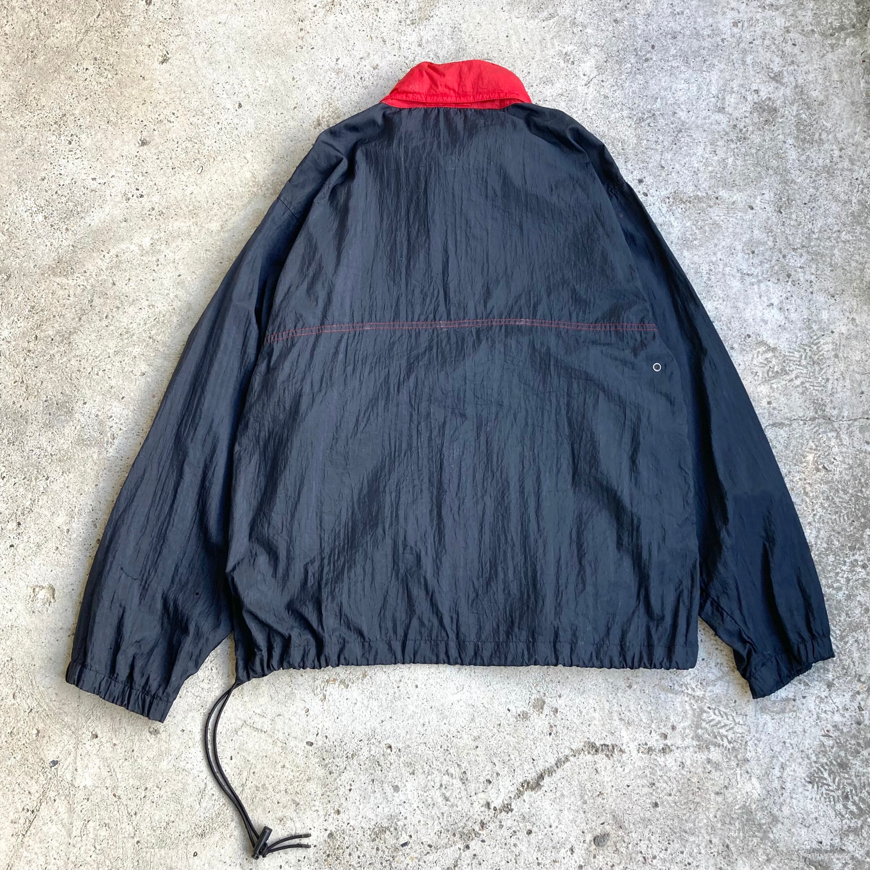 ネック部分がレッドカラーにデザイン切り替えされたナイロンジャケットになります。