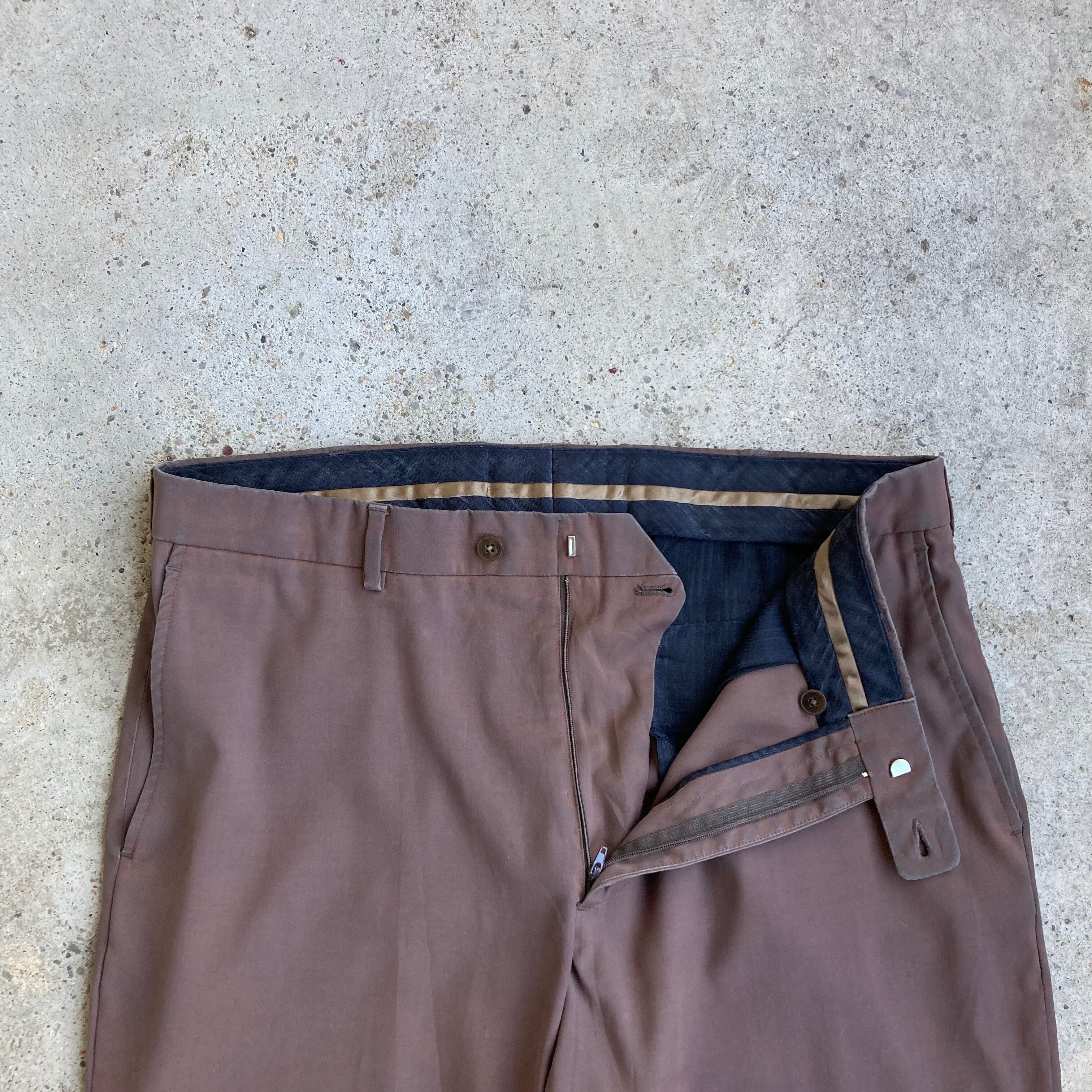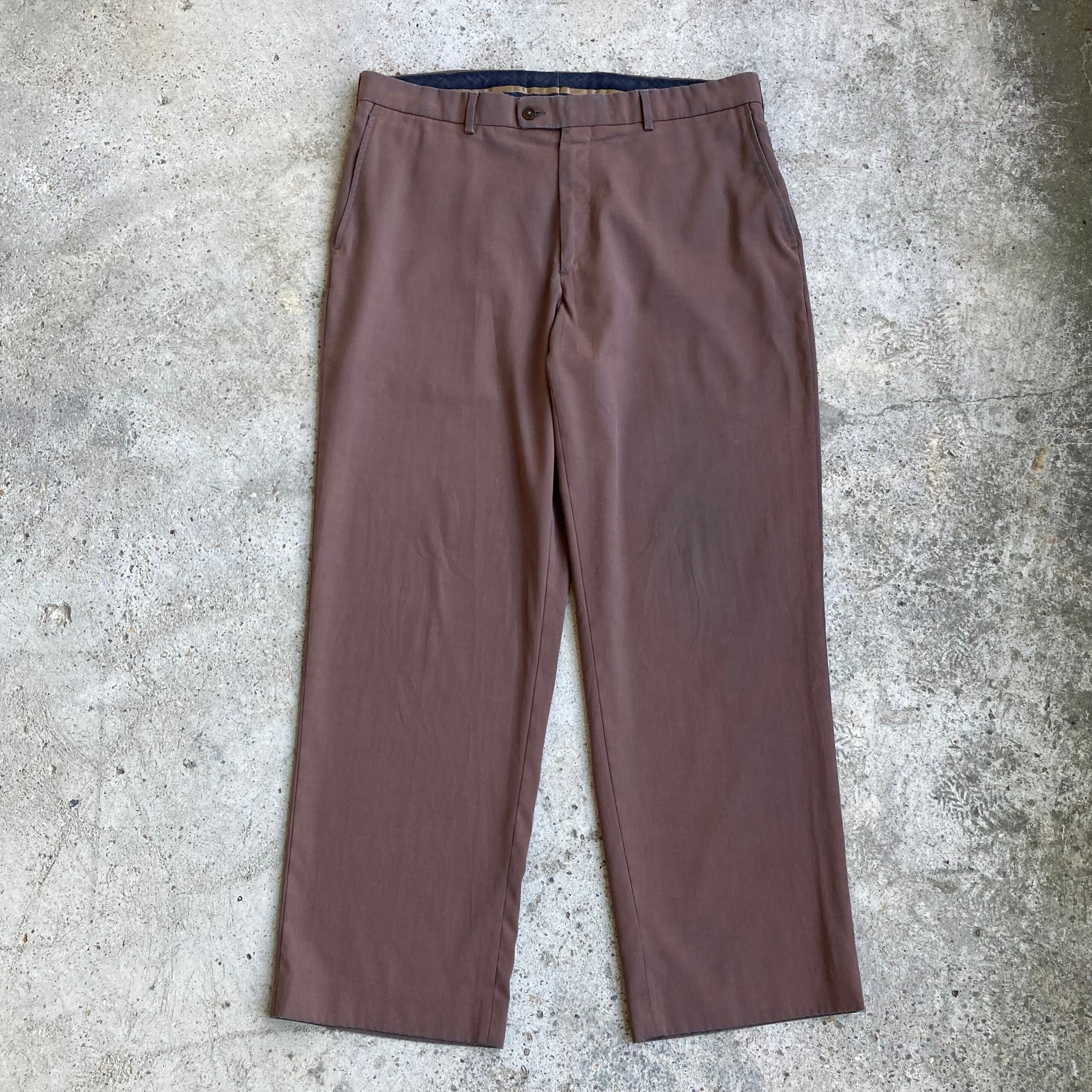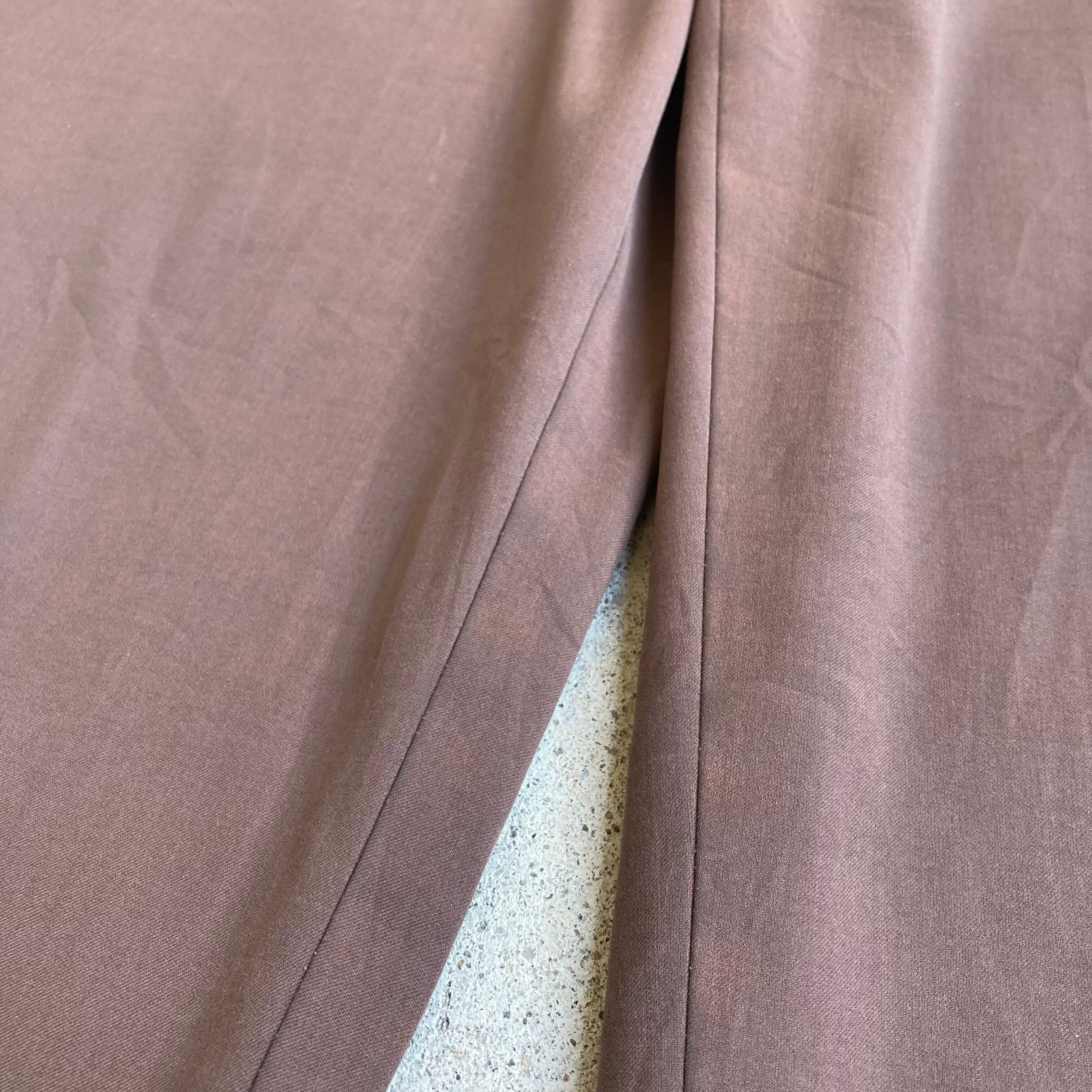 ブラウンカラーのイージースラックスになります。XL程の オーバーサイズ シルエットに加え、レーヨン混合生地ですので、ゆらゆらと靡くような動き方をしてくれる一本です。生地にはうっすらと薄汚れが見られますが、そこが古着らしい雰囲気を醸し出しているポイントになっているかと思います。