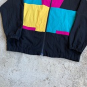 鮮やかでポップなカラーリングのマルチカラーハイネックジャケットになります。