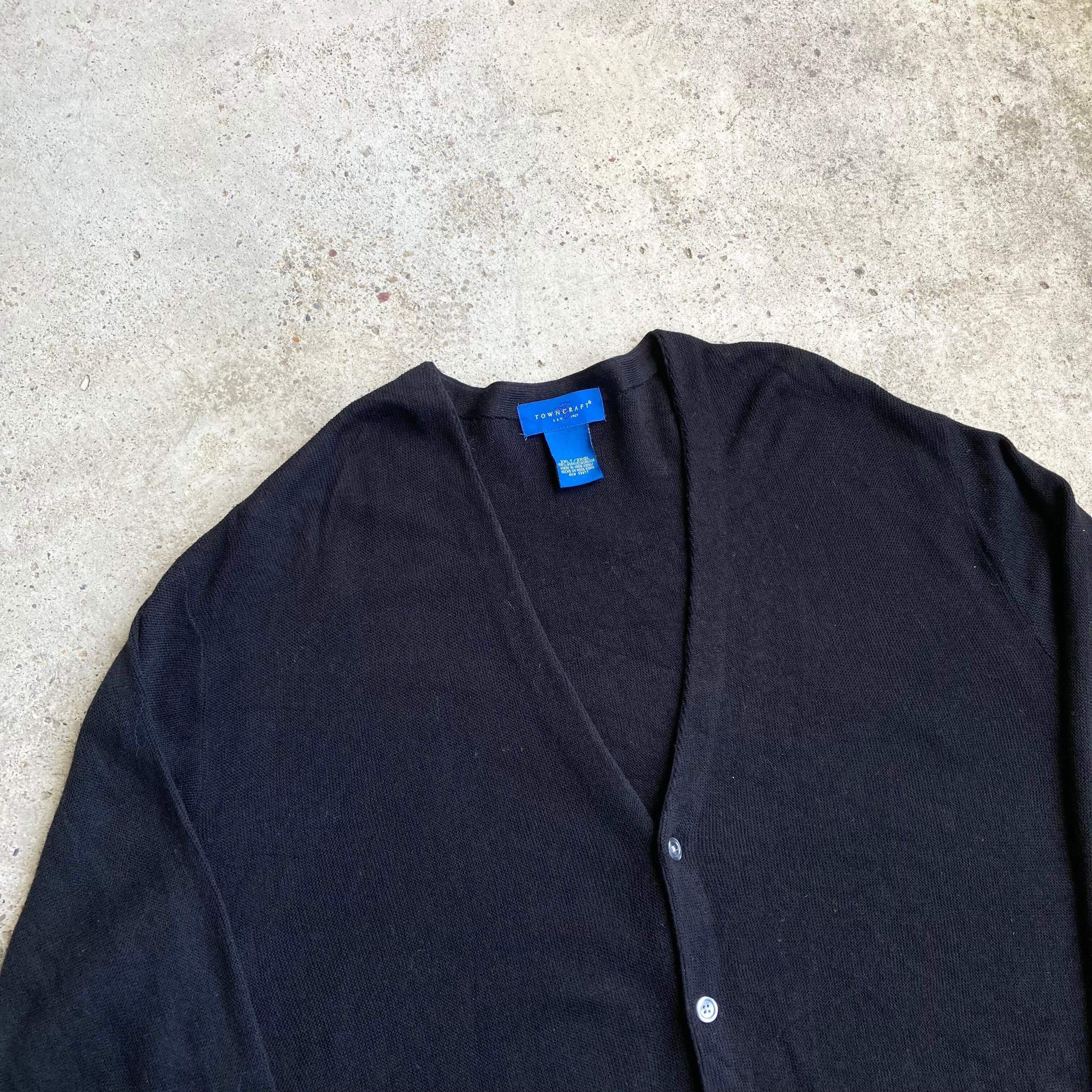 90s TOWNCRAFTのアクリルカーディガンになります。万能のブラックカラーに、2XLの オーバーサイズ シルエットが特徴的な1着です。
