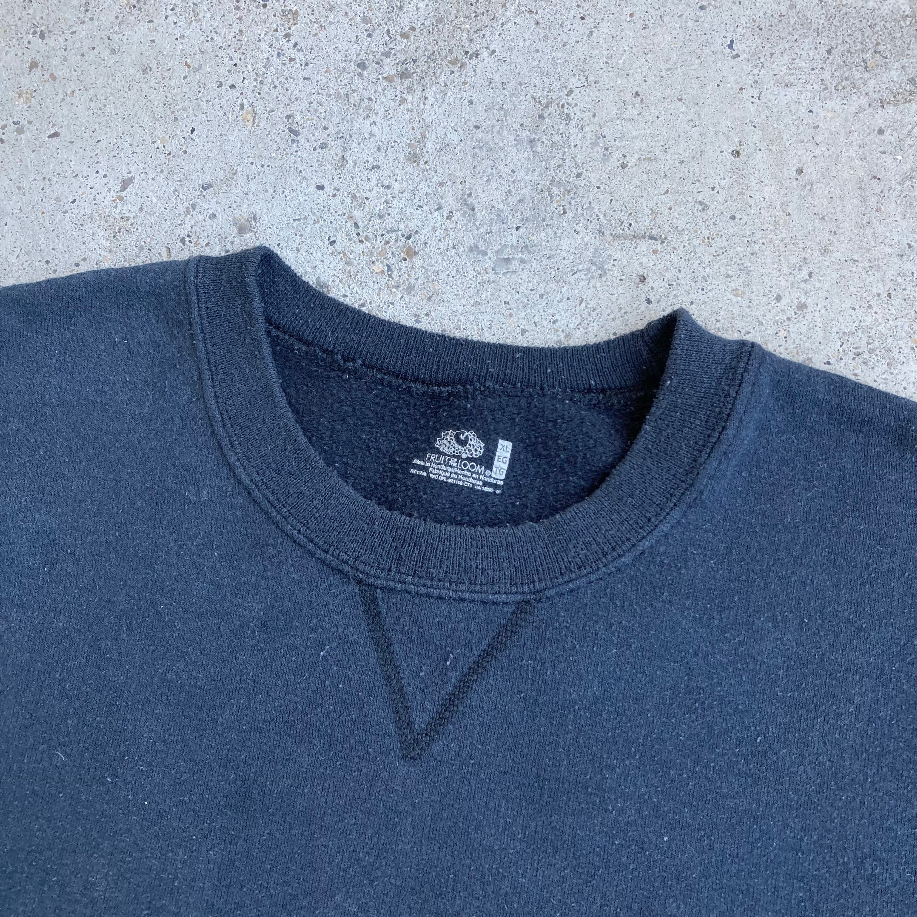 万能なブラックカラーのプレーンスウェットになります。幅広いボトムスに対応してくれる非常に重宝する1着になってくれるかと思います。